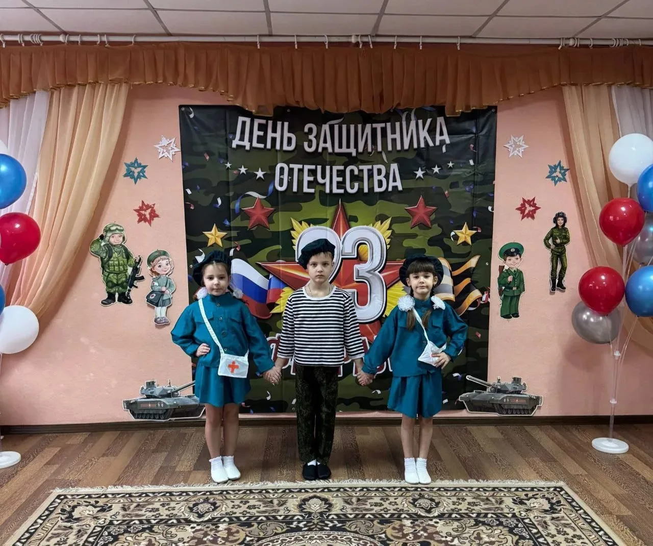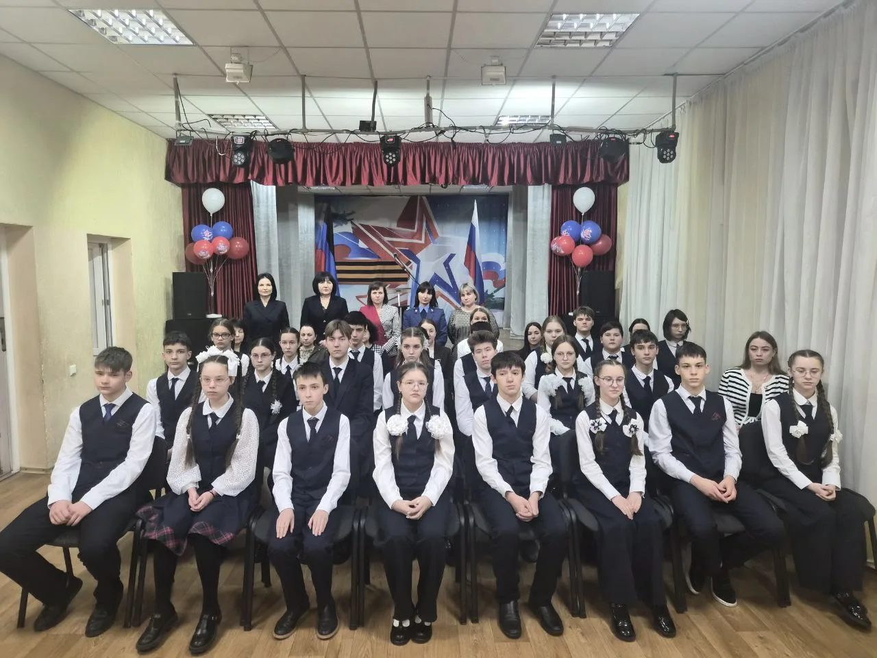 Центральным событием вечера стало глубокое и проникновенное театральное поздравление, подготовленное учениками. Ребята совершили для зрителей настоящий экскурс в историю воинской славы России. Они рассказали не просто о разных эпохах, а провели тонкую нить от былинных богатырей — первых защитников русской земли — через отважных гвардейцев имперских времен и доблестных солдат Великой Отечественной войны к современным героям — участникам специальной военной операции.