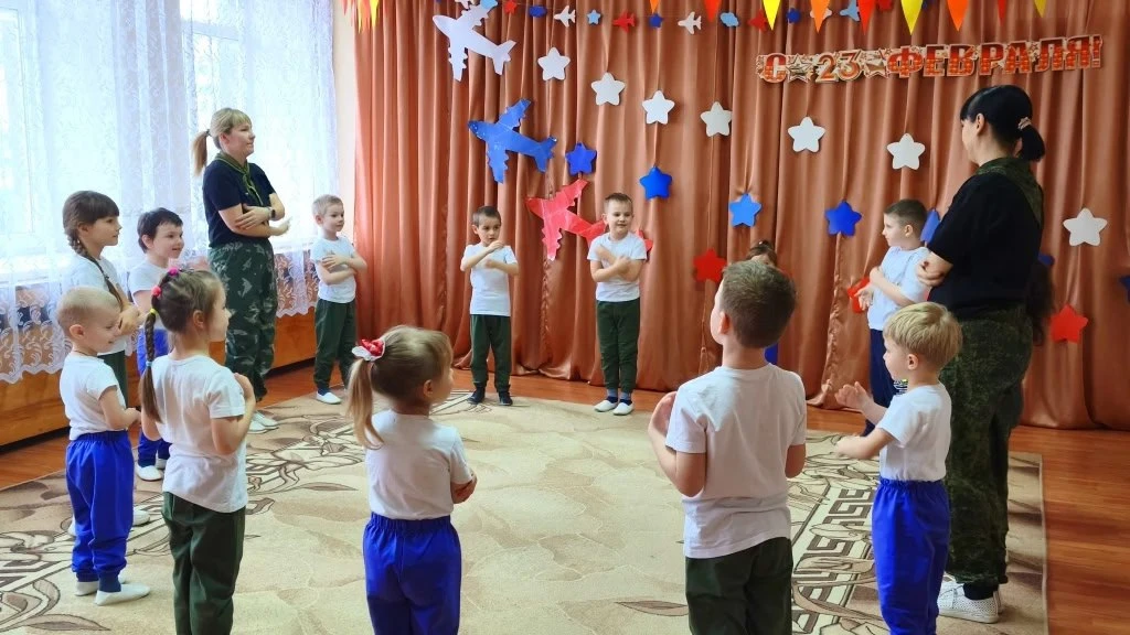 На музыкальных занятиях разучивали песни и танцы патриотической тематики. Были проведены спортивные состязания. Маленьким спортсменам предстояло пройти эстафеты и соревноваться в ловкости, силе, смелости и находчивости.