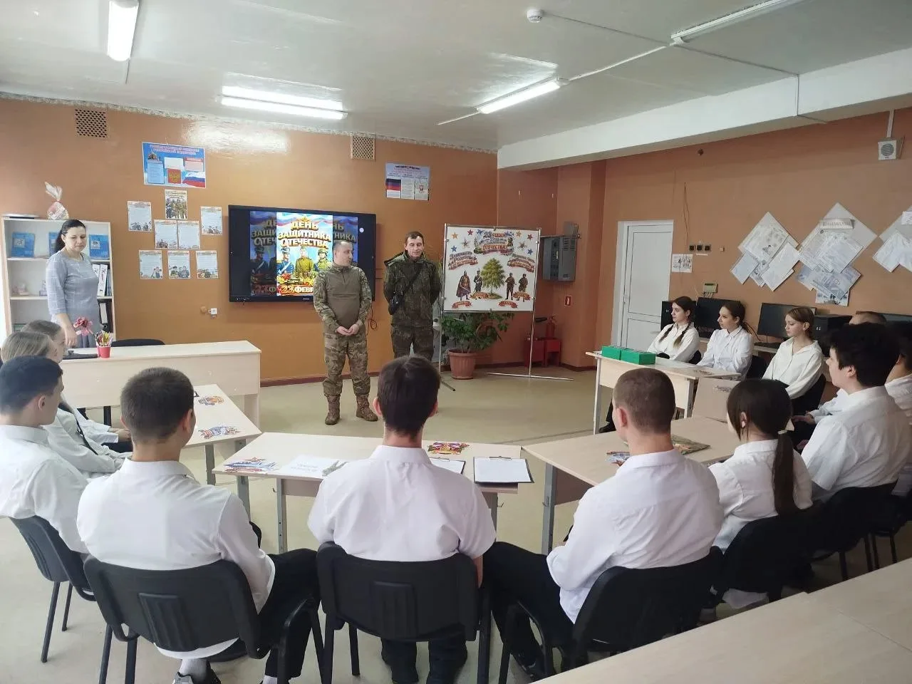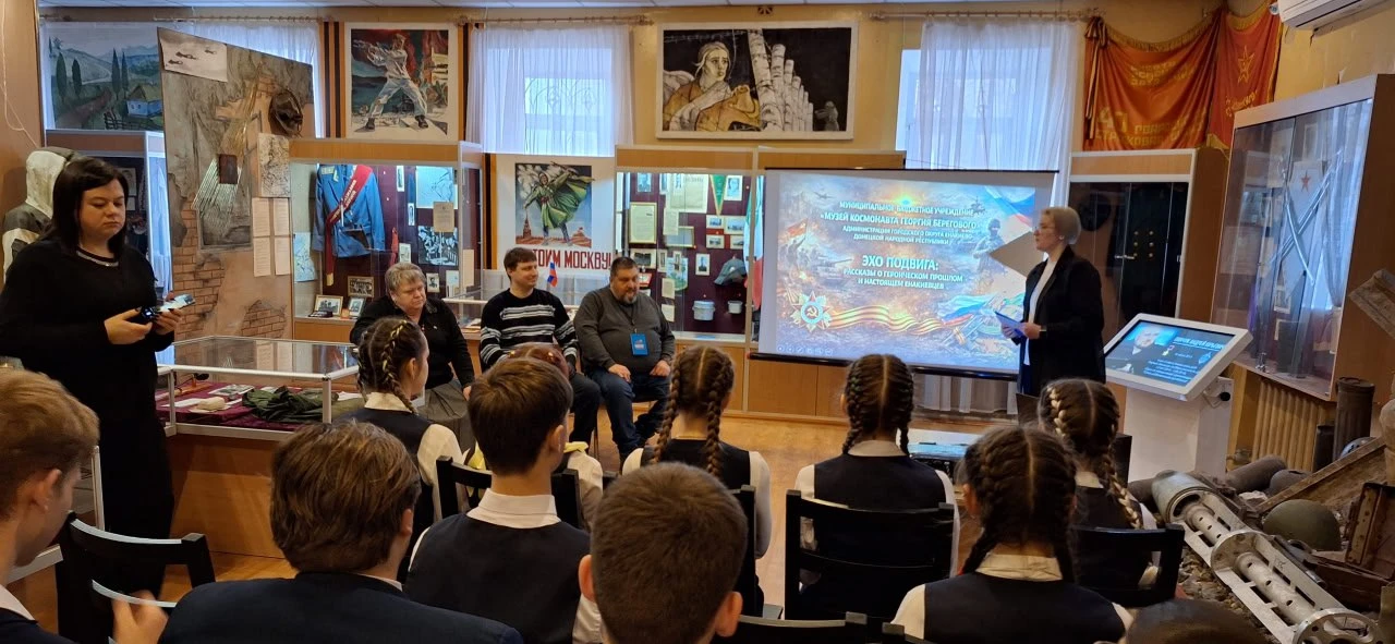 В преддверии Дня защитника Отечества в музее космонавта Георгия Берегового прошла патриотическая беседа «Эхо подвига: рассказы о героическом прошлом и настоящем енакиевцев». Мероприятие было приурочено к продолжающейся специальной военной операции.