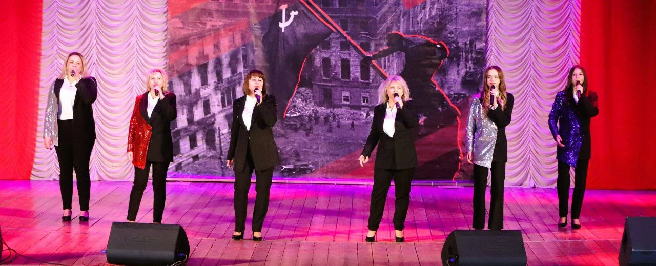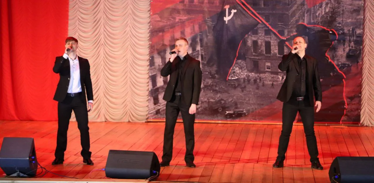 Праздничный концерт продолжился вокальной композицией «Офицеры» в исполнении Детского вокально-инструментального ансамбля «МикроФон» центра детского и юношеского творчества администрации городского округа Енакиево.