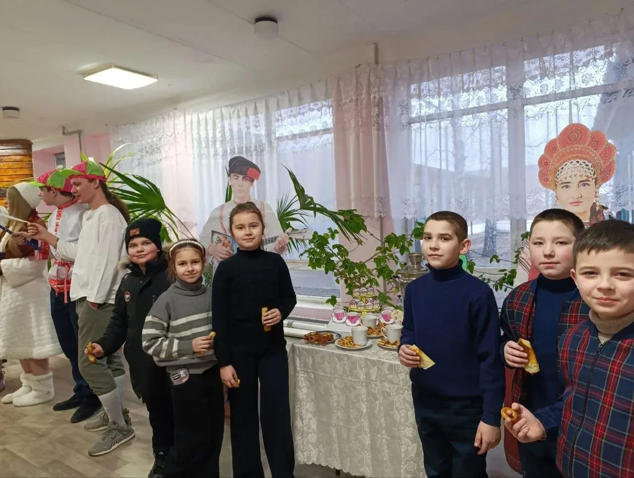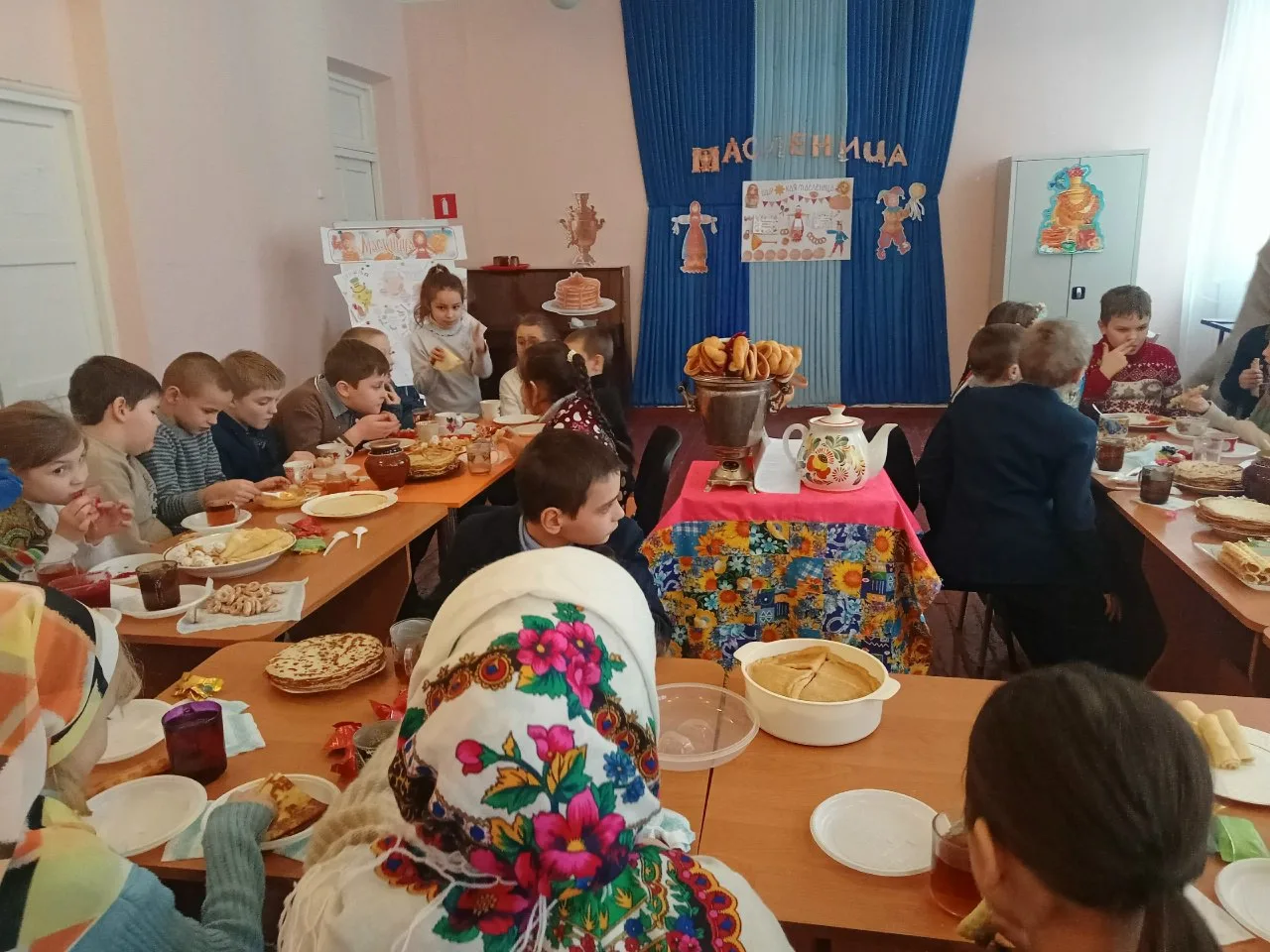 Особой популярностью пользовались школьные ярмарки, где ребята вместе с родителями и педагогами подготовили разнообразные угощения. Во многих школах прошли чаепития с блинами — главным символом праздника, олицетворяющим солнце и приход весны.