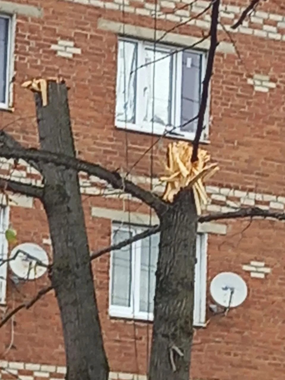 Посмотрите, что сейчас происходит возле 5 школы. Сказали, что обрезку деревьев производят электросети. Но это не обрезка- это , по- моему, обгрызка. А одно дерево вообще лопнуло вдоль, разве оно выживет? Разве это не варварство над природой?