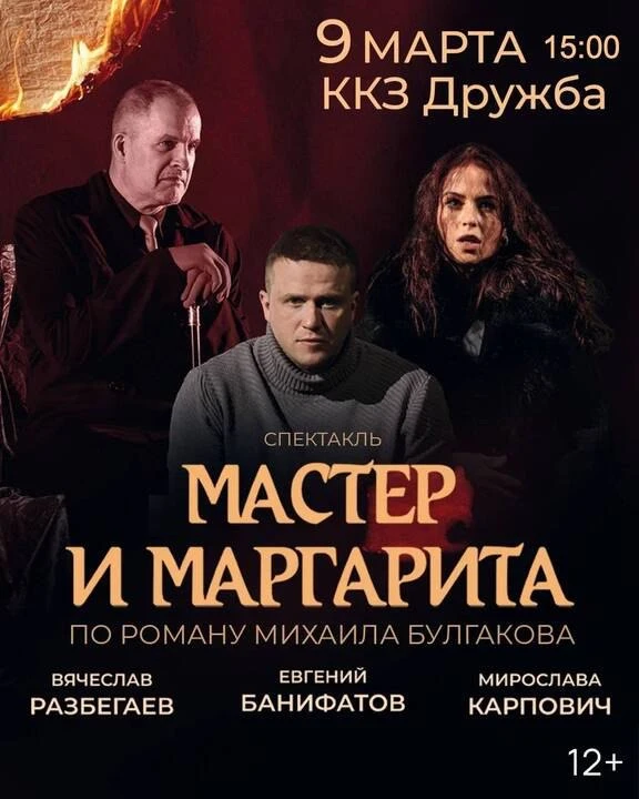 9 Марта в Брянске ! "Мастер и Маргарита" — это не просто спектакль, это погружение в глубины загадочного и исключительного. Сверхъестественное воплощается на сцене, а зрители становятся участниками мистической одиссеи, где каждый момент — это тайна, каждый взгляд — загадка.