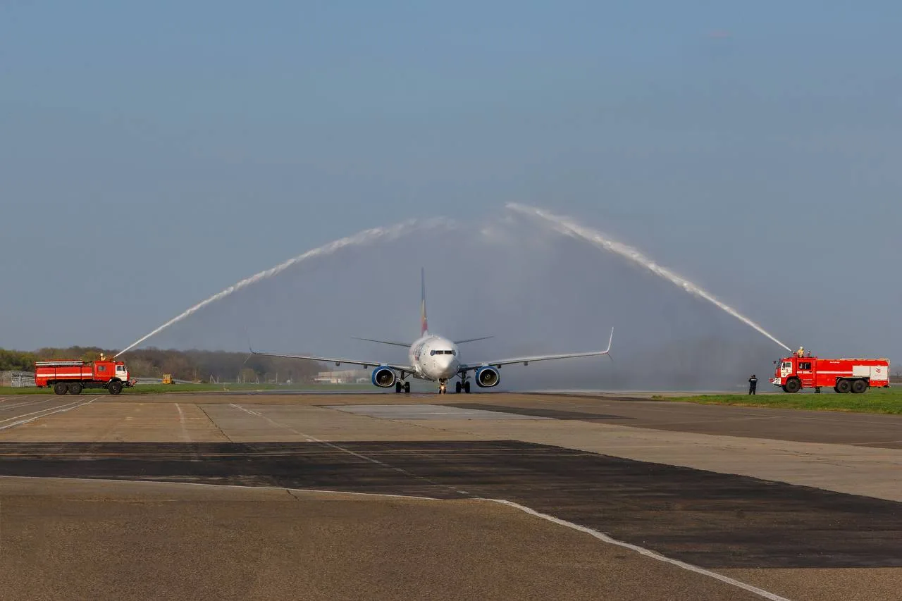 Вчера в аэропорту Краснодара авиакомпания Red Sea Airlines приступила к обслуживанию рейсов на курорт Красного моря. Самолёт встретили по авиационной традиции - водной аркой.