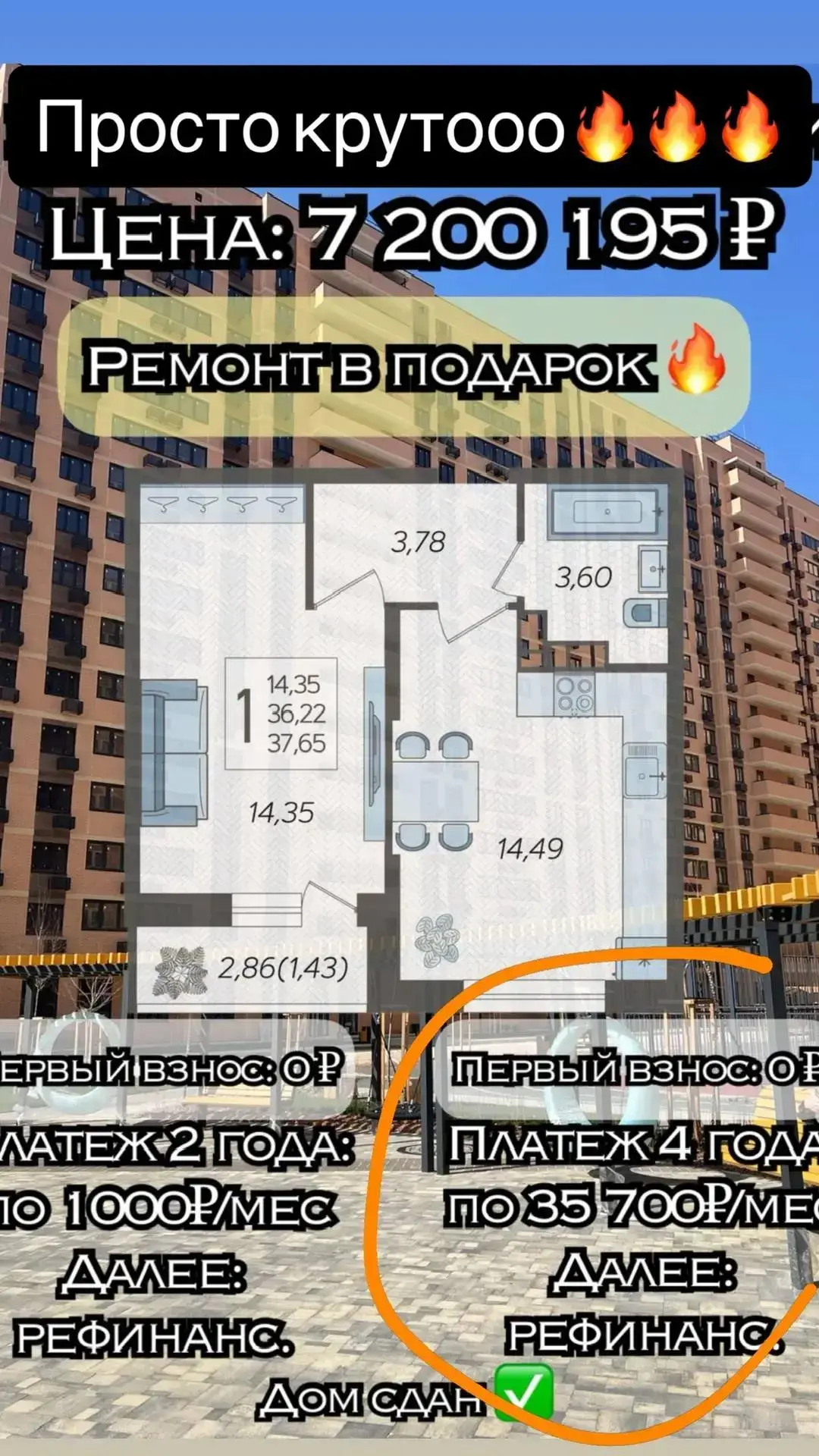 🚀 КВАРТИРА С РЕМОНТОМ — БЕЗ ПЕРВОГО ВЗНОСА