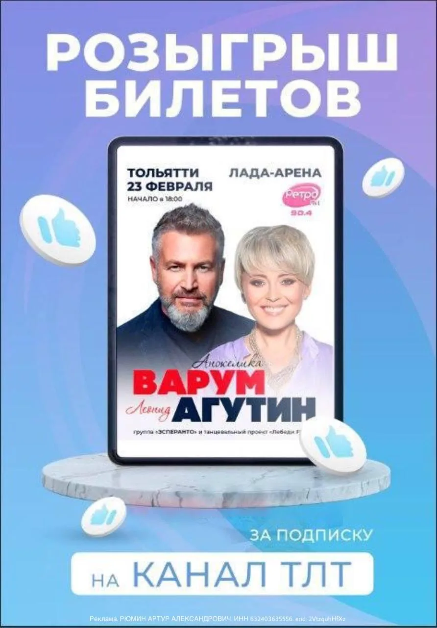 Дарим 4 билета на концерт Леонида Агутина и Анжелики Варум в Тольятти уже ЗАВТРА!