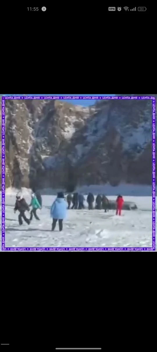 В сети появилось видео трагедии на озере Байкал, где автомобиль УАЗ с китайскими туристами провалился под лёд.