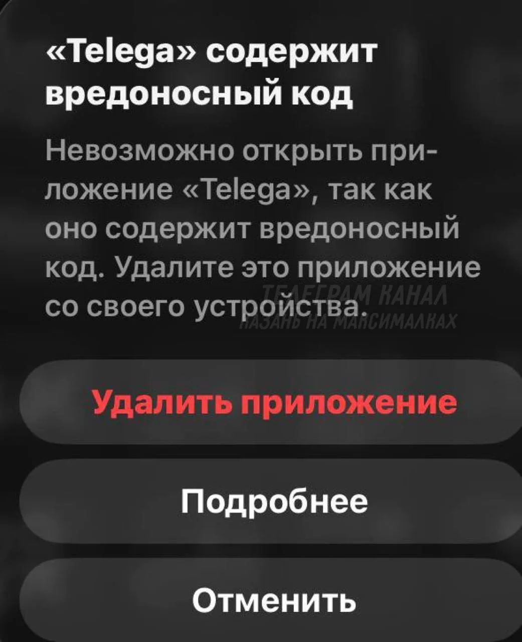 Apple запретила владельцам iPhone открывать Telega — при попытке воспользоваться клиентом мессенджера выходит предупреждение о том, что он содержит вредоносный код