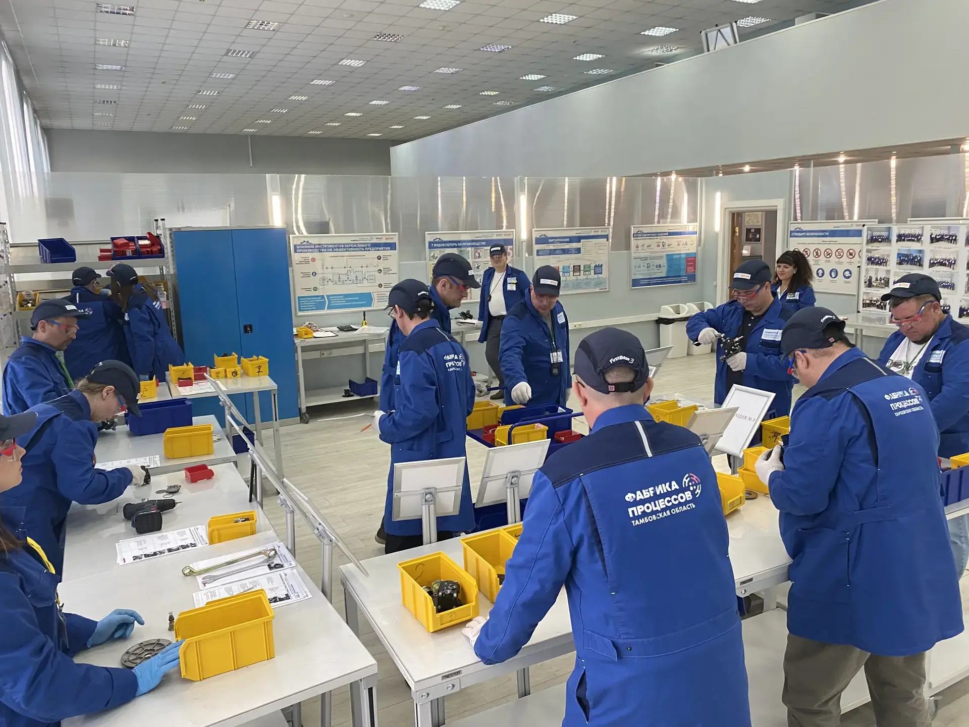 🔹 Фабрика процессов представляет собой учебную площадку, где участники в условиях реального производственного цикла получают опыт применения бережливых технологий. За один интенсивный день команда проживает три игровые смены, в ходе которых имитируется сборка узла. Основная цель тренинга — наглядно показать, как возникают производственные потери и каким образом их оптимизация напрямую влияет на экономические показатели и качество продукции.
