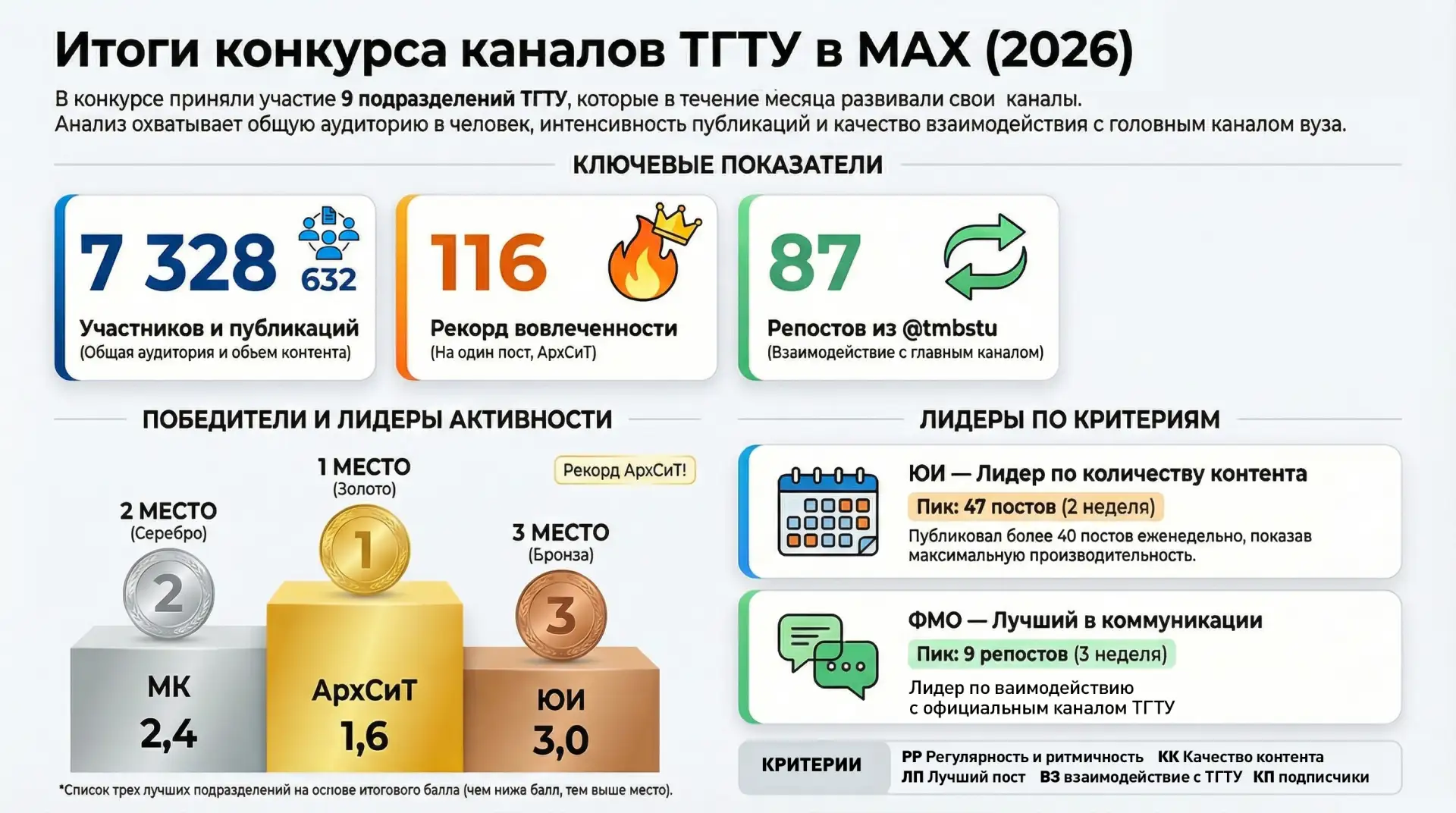 Поздравляем победителя и призеров! Благодарим все подразделения за активность, интересный контент и вовлеченность в университетскую повестку.