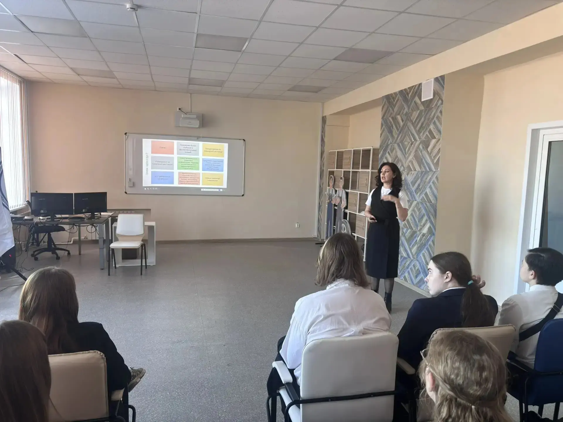 Начальник управления непрерывного образования ТГТУ Антонина Родина провела для юных участников лекцию, посвященную построению профессиональной траектории.