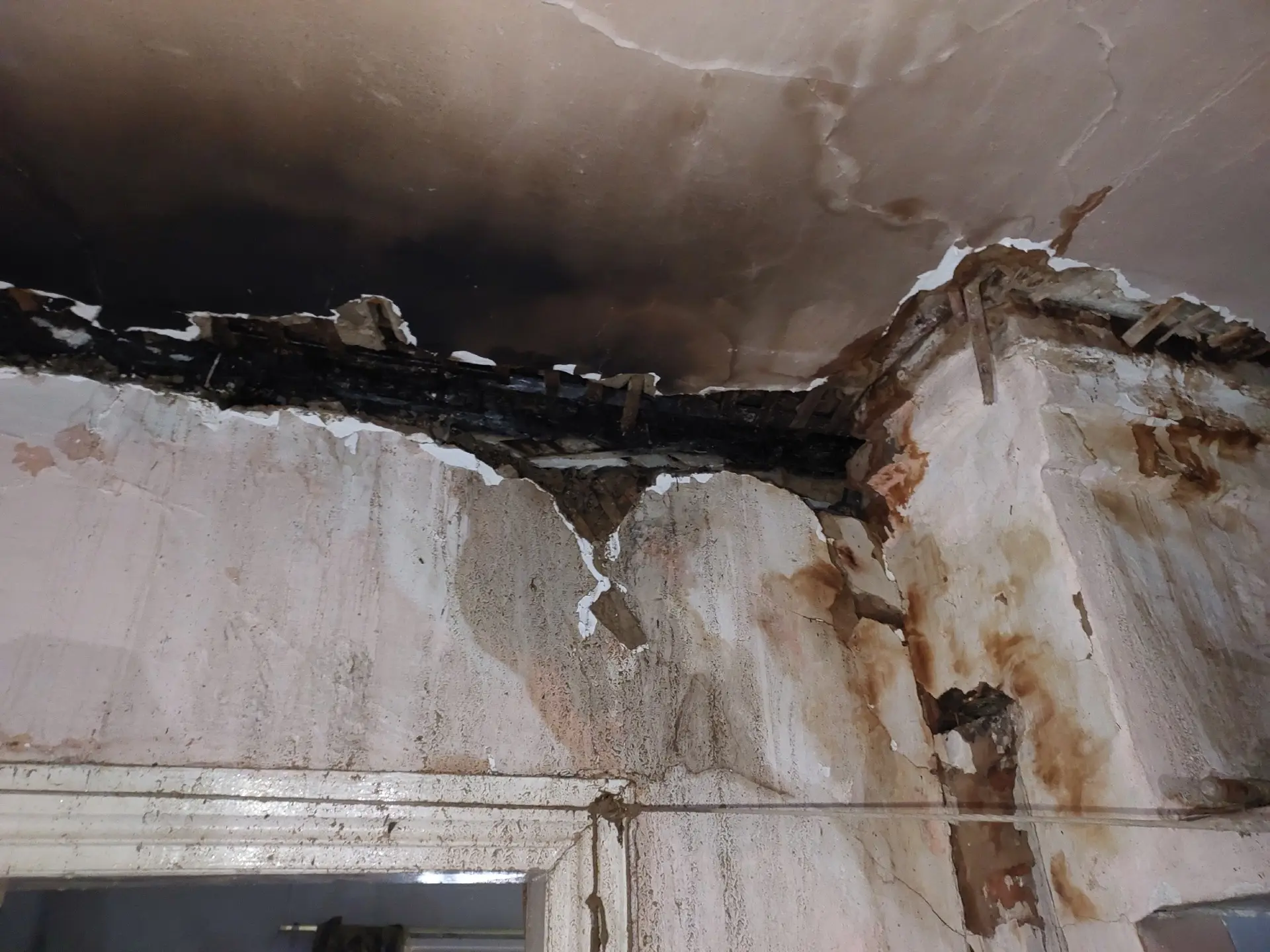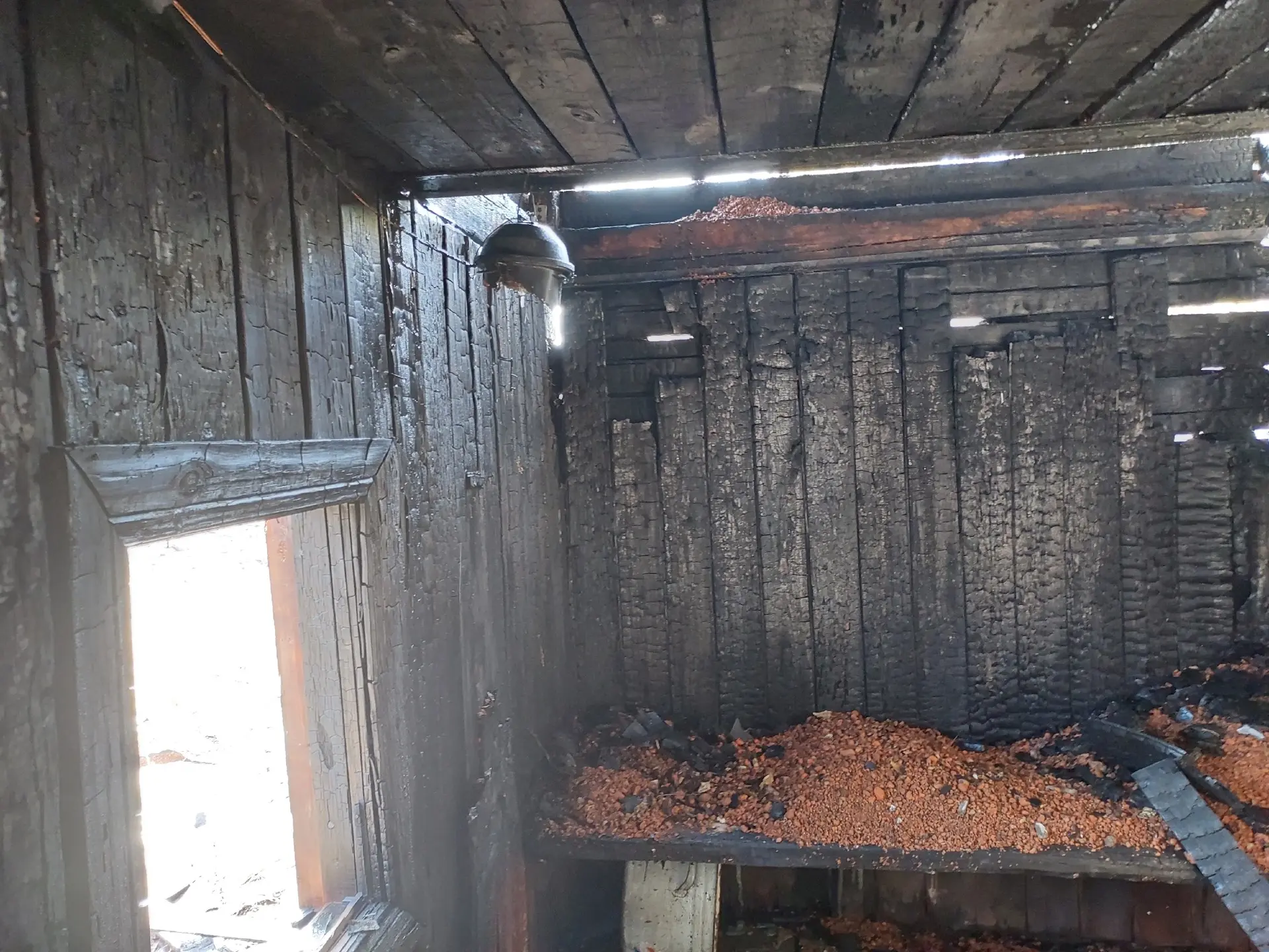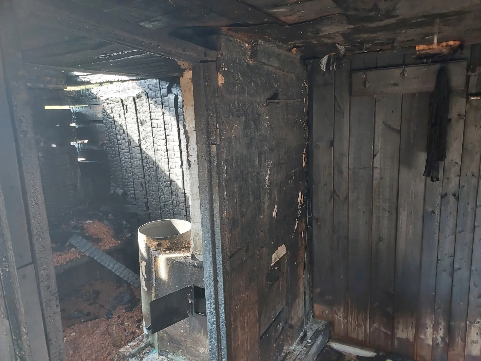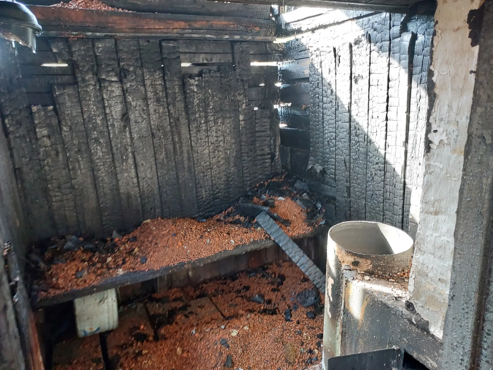 Площадь пожара составила 8 кв.м. Причиной пожара является недостаток конструкции трубы твердотопливной печи отопления.