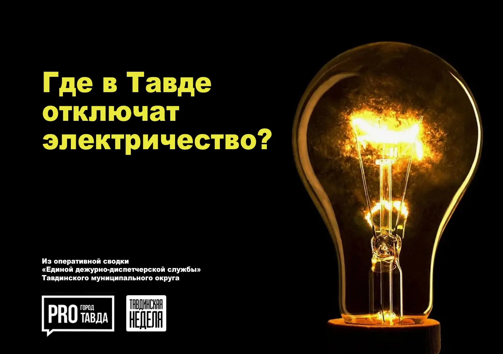 15.04.2026 с 08:30 до 13:00 будет отключение электроэнергии н. п. г. Тавда под отключение попадают: ул. Белорусская, ул. Ситникова, ул. Уральская, ул. Центральная, ул. Дружбы, ул. Победы, ул. Аэродромная, ул. Геологическая, ул. Песчаная, ул. Омская, пер. Омский, пер. Береговой, пер. Центральный, пер. Аэродромный, пер. Линейный, пер. Песчаный; пер. Кренкеля №№19,21,23-30, 32,34,36,38,40,42,44,46; ул. Стахановская №№ 47, 54а, 53, 56, 58, 60, 62,64, 66,68; ул. Красногвардейская №№73, 79, 81, 83, 85, 106, 108, 110, 112, 114, 116, 116а, 118, 120; школа № 11; д/с (ул. Красногвардейская, 120); Котельная (ТТК №4, ул. Геологическая, 43); дачи «Песчаное-1» и «Песчаное-2»; Пекарня по ул. Уральская.