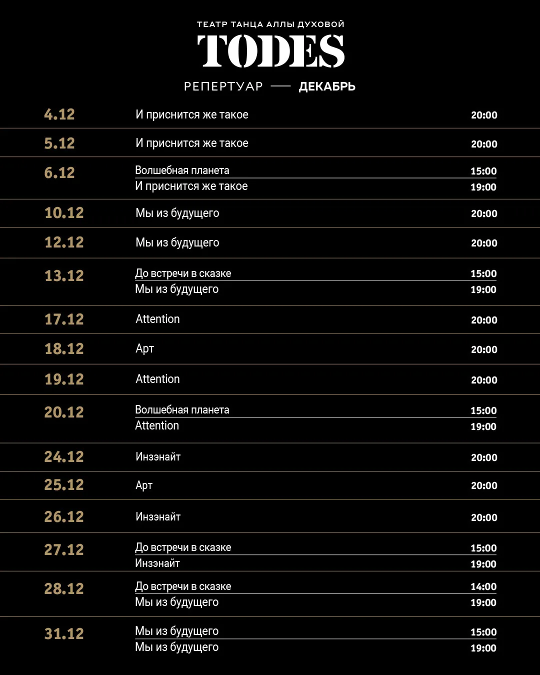 Каждый декабрь в студиях танца Аллы Духовой TODES начинаются отчётные концерты — показатель вашей упорной работы, мастерства и любви к танцу❤️