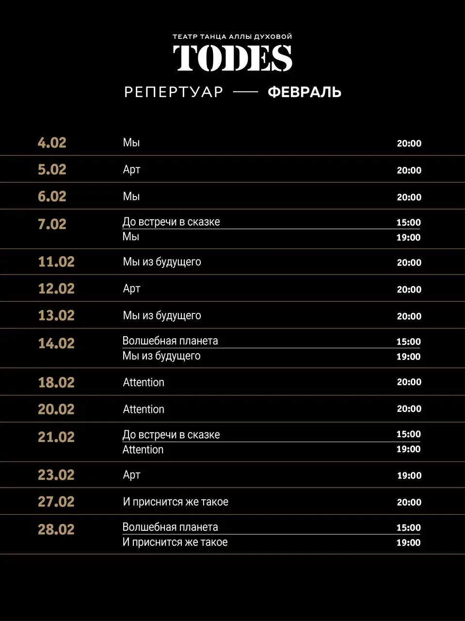 Уже 30 января после небольших каникул Театр танца Аллы Духовой TODES вновь откроет свои двери для зрителей!