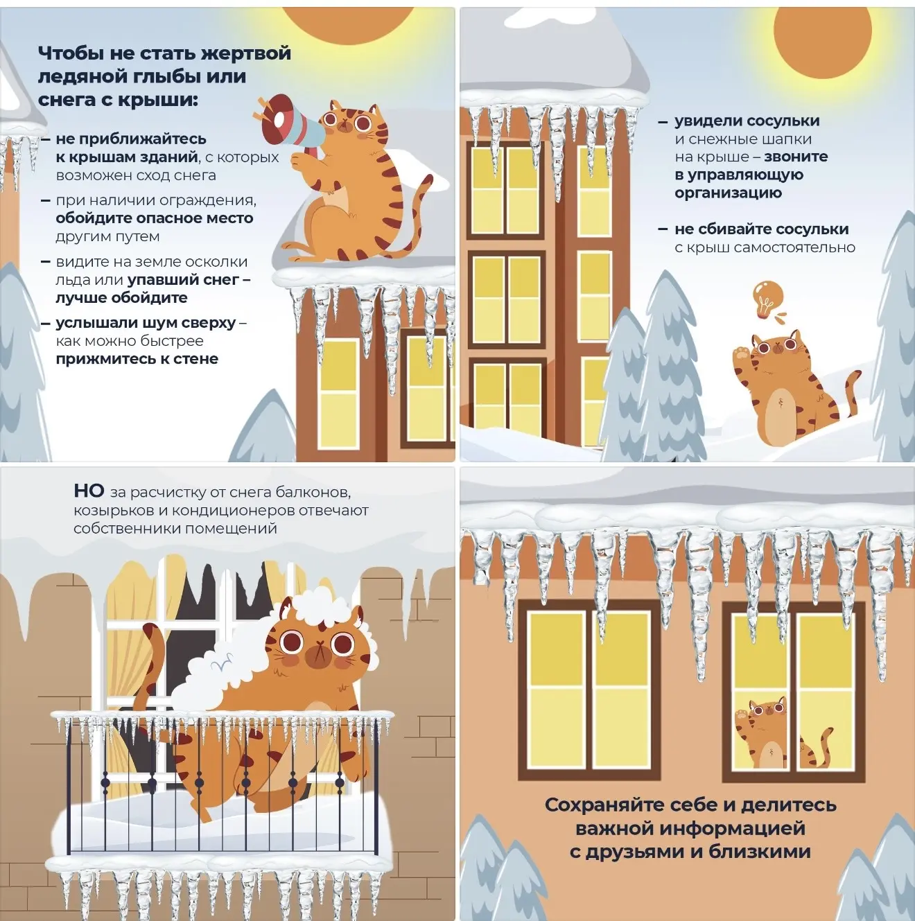 Как следует ходить по улицам, чтобы снег не свалился на голову – расскажем в карточках.