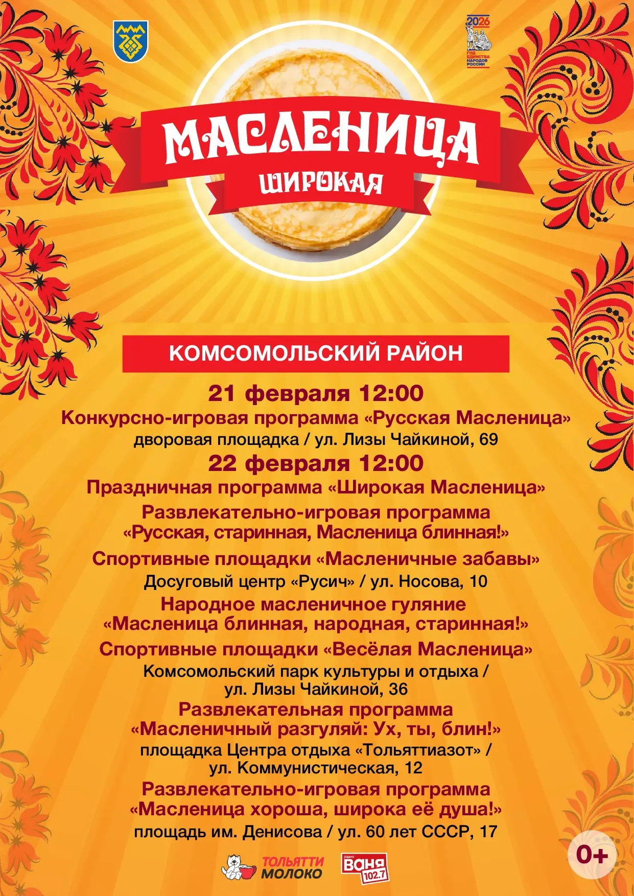Напоминаем праздничную программу Масленицы в Тольятти.
