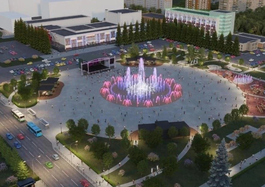 На Центральной площади Тольятти установят большой фонтан с подсветкой, который зимой будет превращаться в каток.