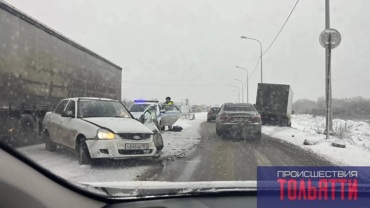 Трасса М5, Самара-Тольятти. Сплошной лед на дороге. Уже есть ДТП.