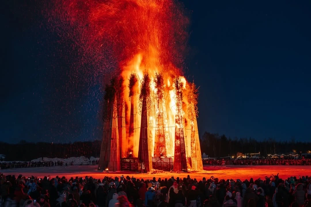 🔥 В арт-парке Никола-Ленивец прошёл огненный перформанс Масленицы