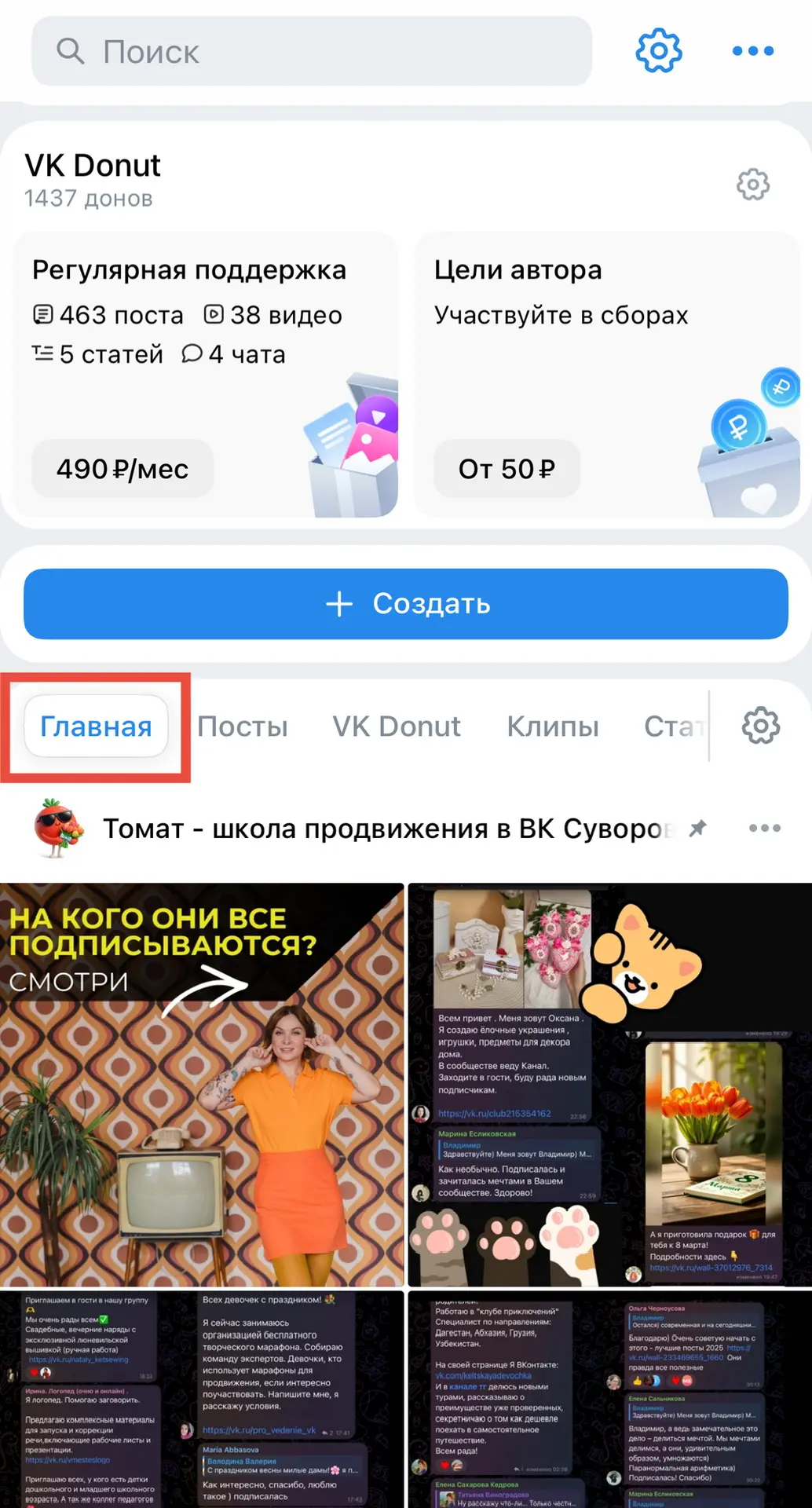 Главная страница в сообществе - это лента объединяющую весь контент в одном месте😎
