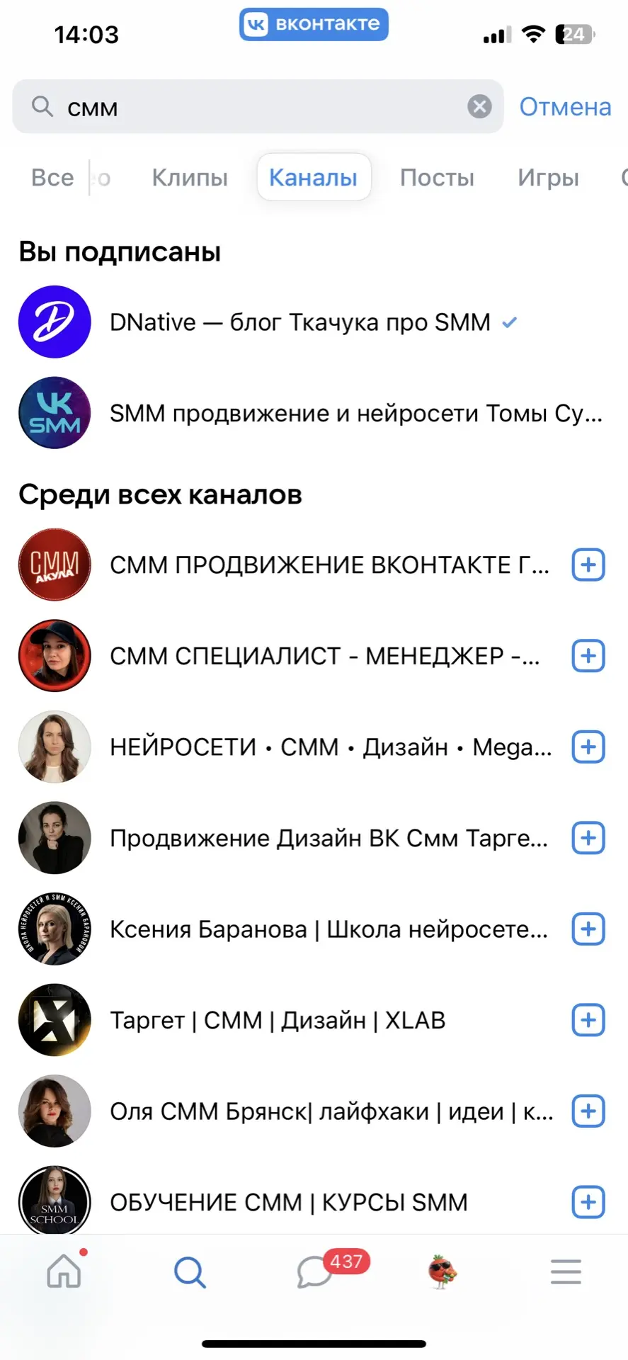 Теперь в поиске ВК рекомендует каналы и можно найти интересных авторов прямо через поиск.