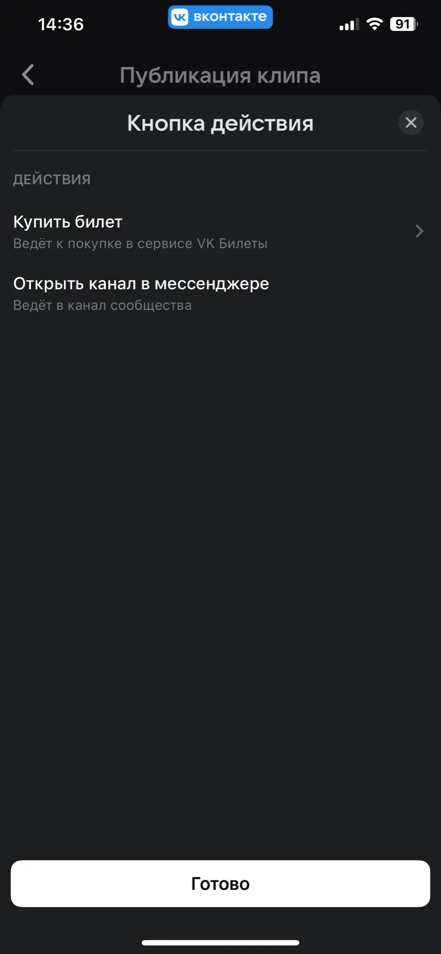 🔹В клипах можно добавить кнопку действия для перехода в каналы. Можно собирать подписчиков в канал еще одной точкой касания.