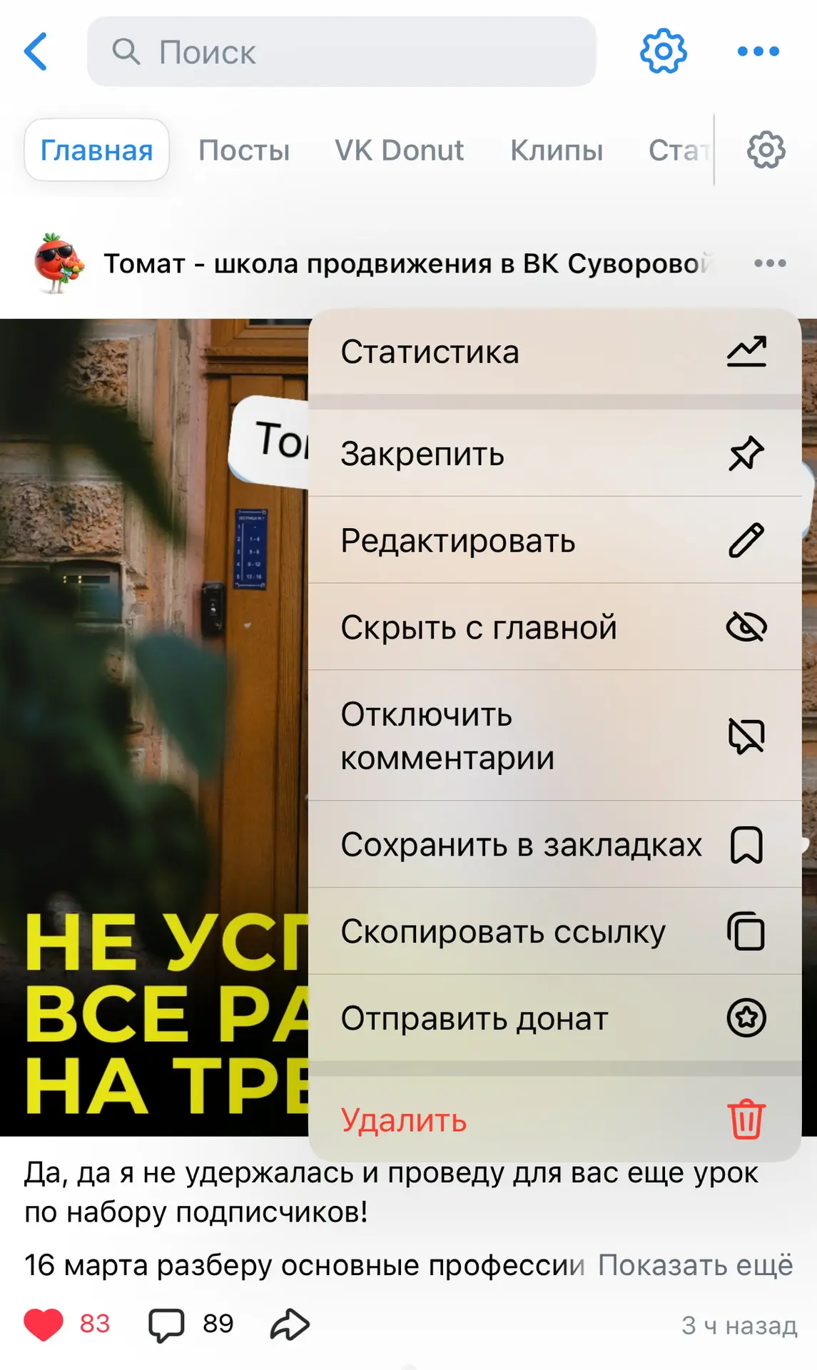 ✅ Можно скрыть лишние посты. Их не будет на главной, но они будут в разделе «Посты».