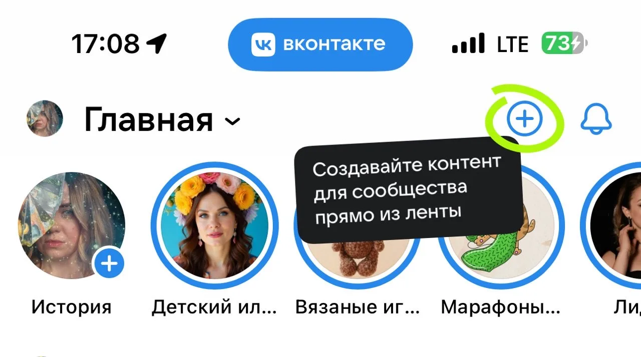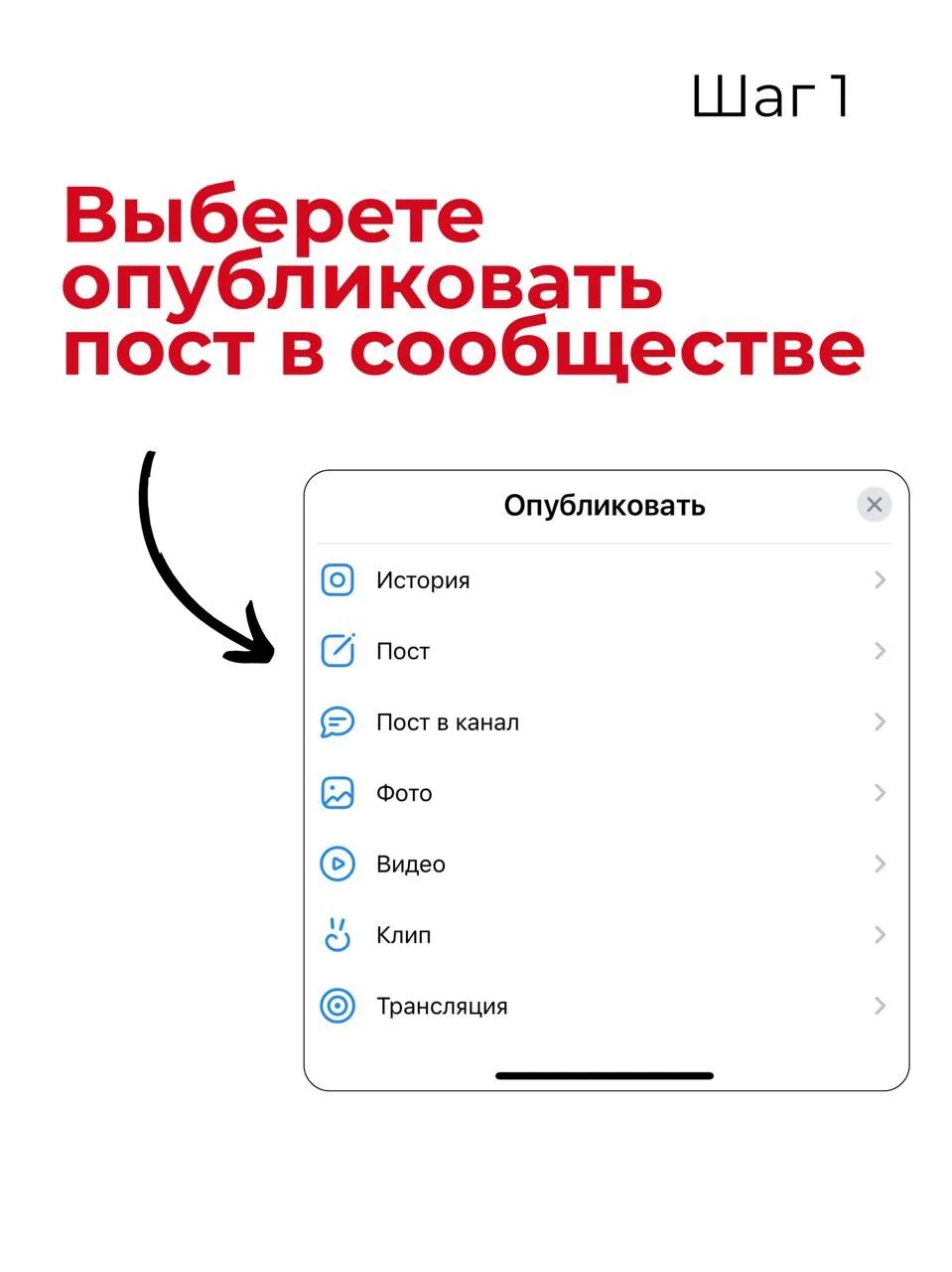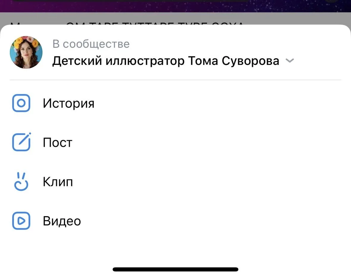 Просто нажимаем ➕ в правом верхнем углу, выбираем сообщество и формат публикации.