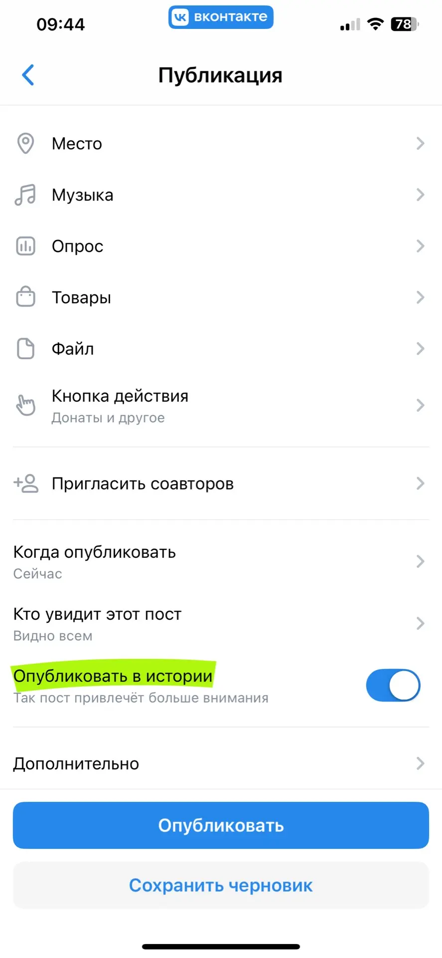 🔹Если вы используете отложенные посты, в истории они не публикуются