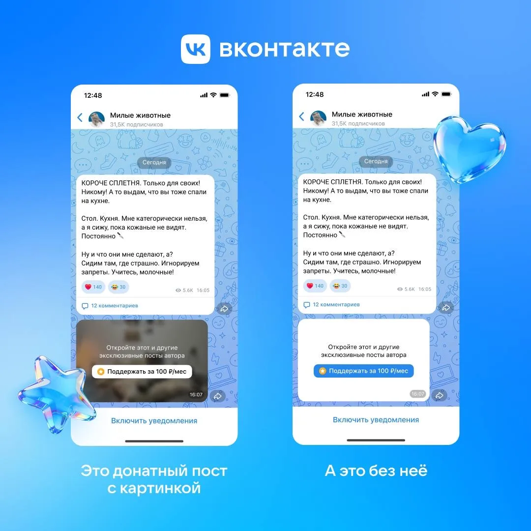 🔹Донатные посты в канале, доны увидят такими же, как в сообществе. А для остальных подписчиков донатные посты с фото будут с размытым фоном.