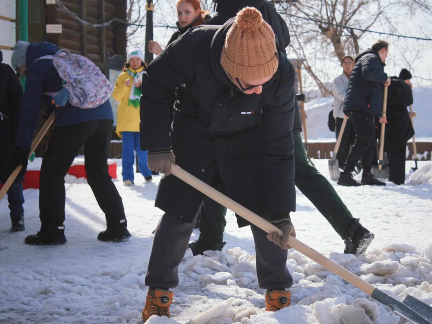В Томске студенты продолжают очищать от снега дома пенсионеров и соцучреждения