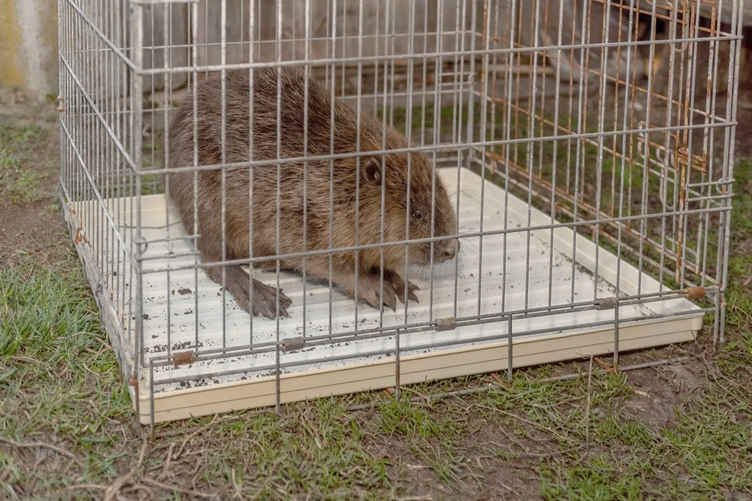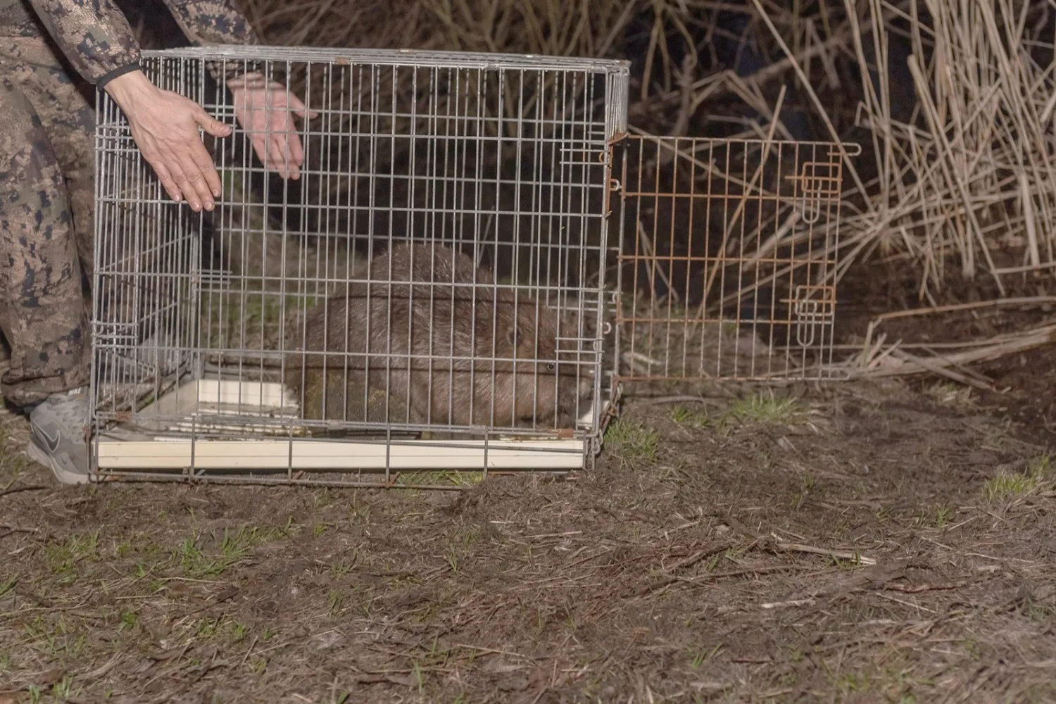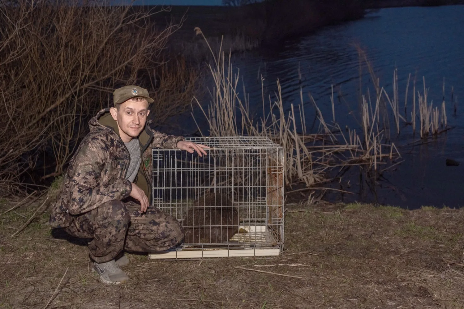 🌊❤Бобра поймали, поместили в клетку и привезли на берег водоёма. Там его выпустили на волю.