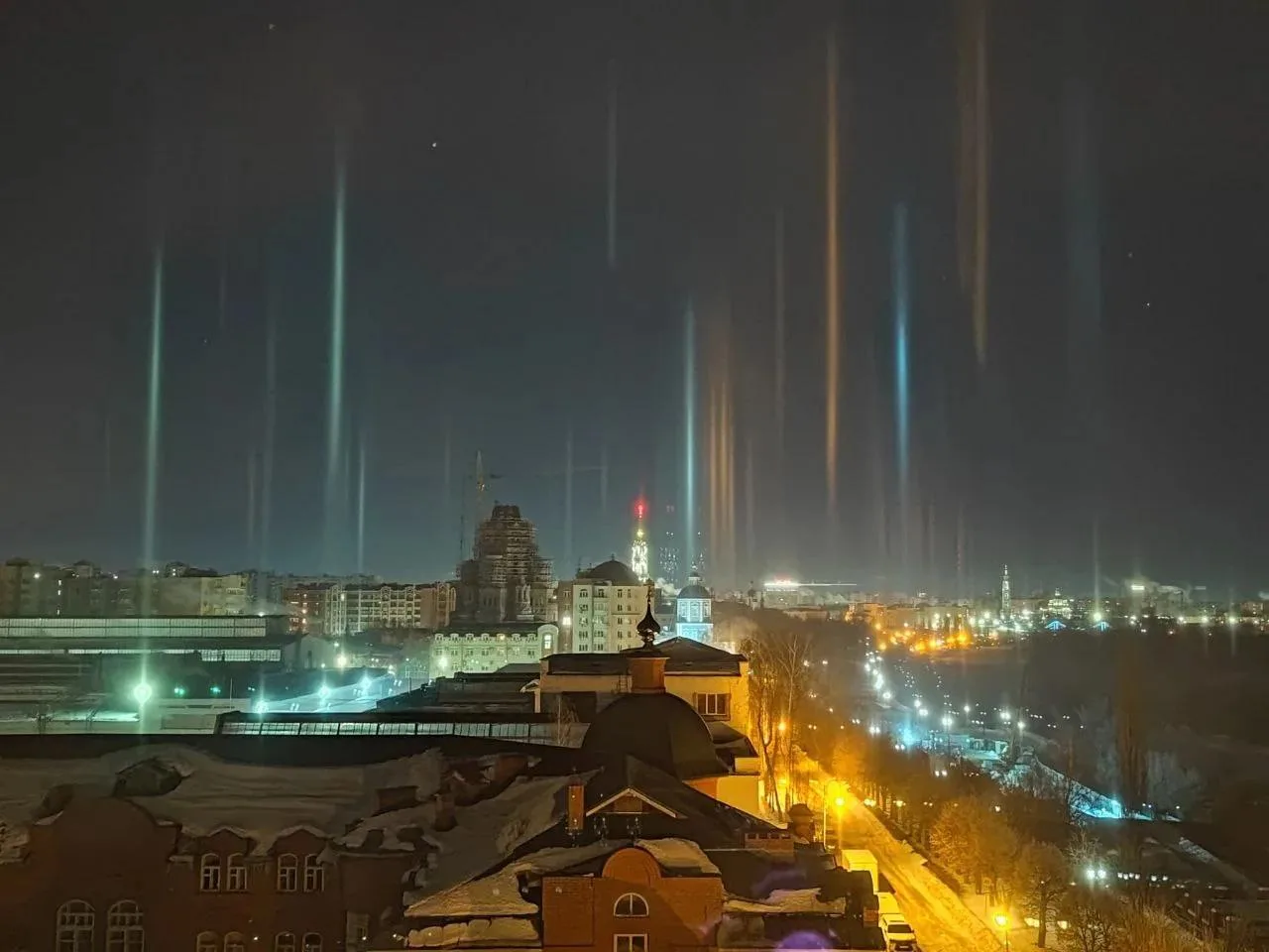 Это разновидность гало: при сильном морозе — примерно от −15 до −20 градусов — в воздухе зависают ледяные кристаллы. Они отражают свет, как крошечные зеркала, и создают иллюзию сияющих столбов, уходящих ввысь.