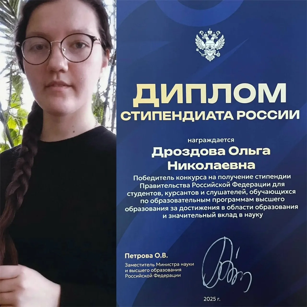 Стипендия Правительства РФ присуждается студентам с высокими академическими результатами, активной научной и общественной деятельностью.