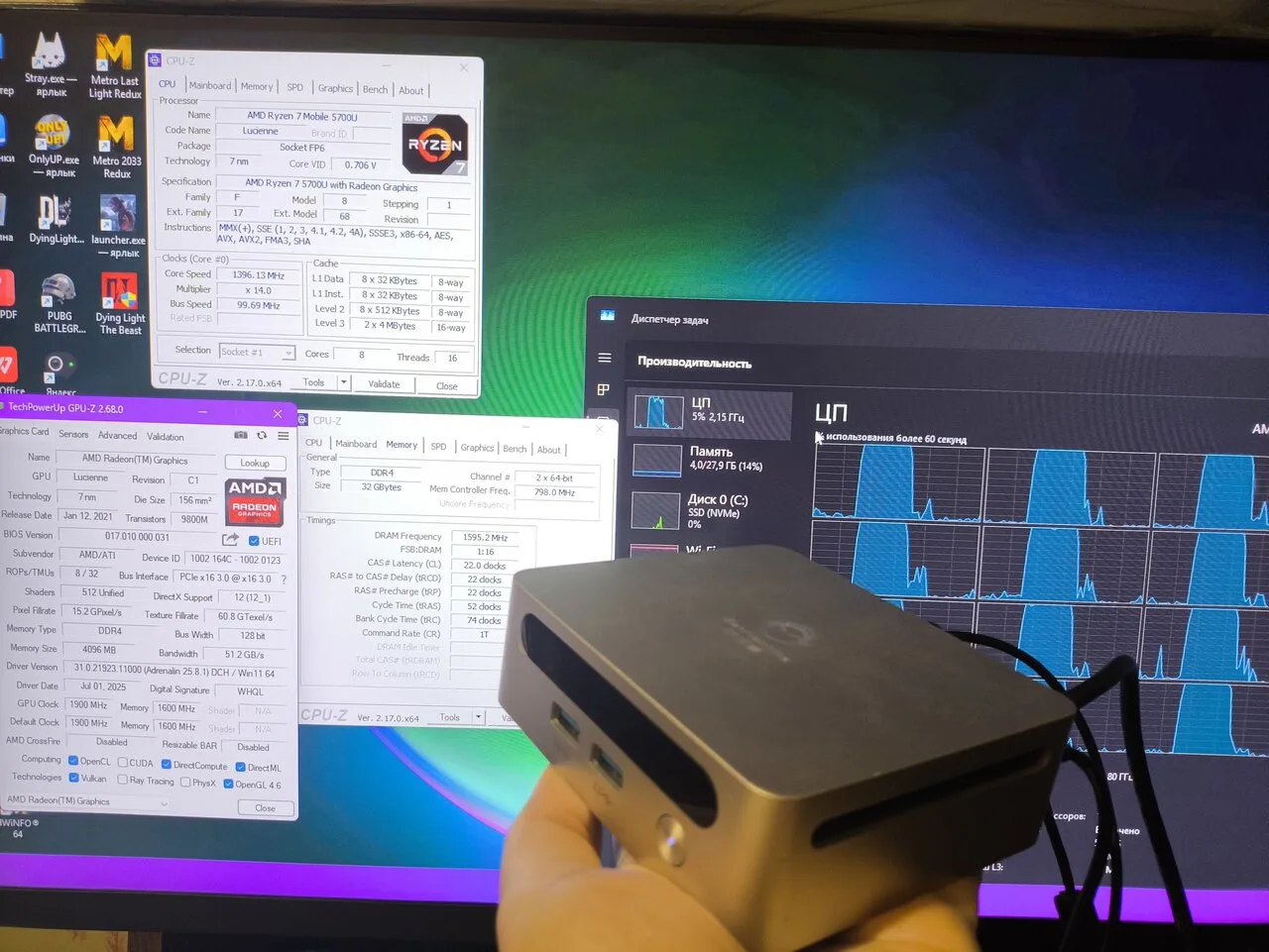🔹 **Процессор:** AMD Ryzen 7 5700U (16 потоков, Zen2) — хватит для любых игр!