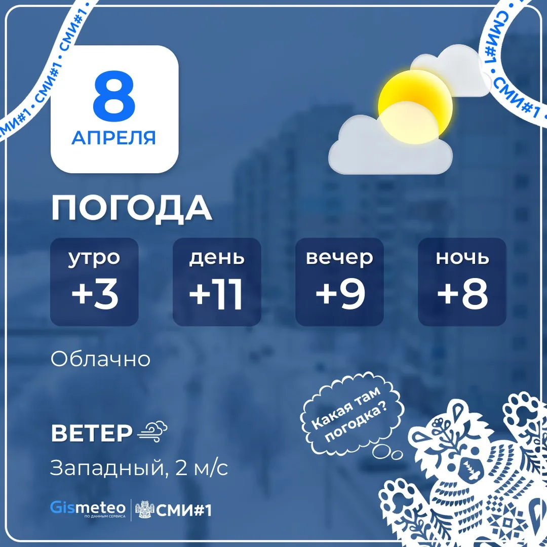 Утром температура воздуха составит около +3 °C. Днем столбик термометра поднимется до +11 °C, а порывы ветра могут достигать 2 м/с. Ночью температура составит +8 °C.