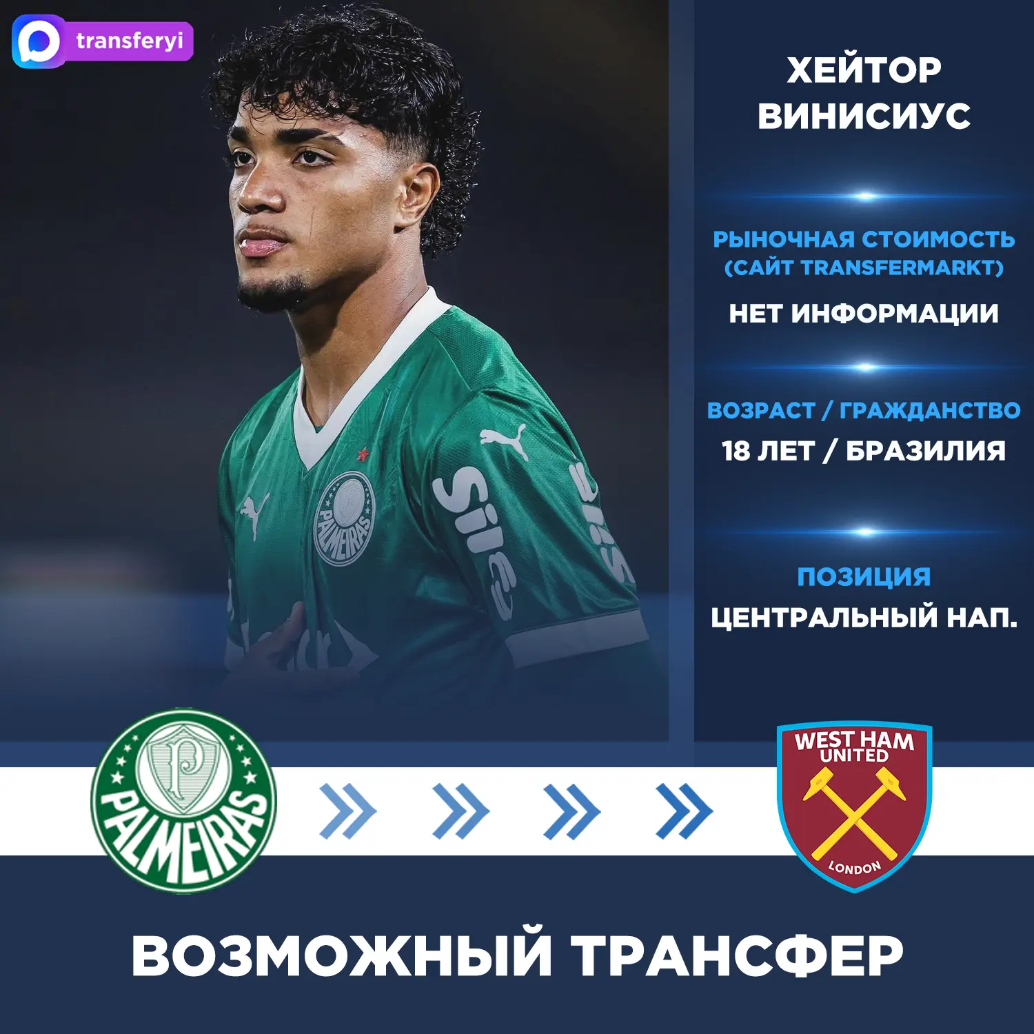 Инсайдер Жорже Никола: Нападающий «Палмейраса» Хейтор Винисиус попал в сферу интересов «Вест Хэма».