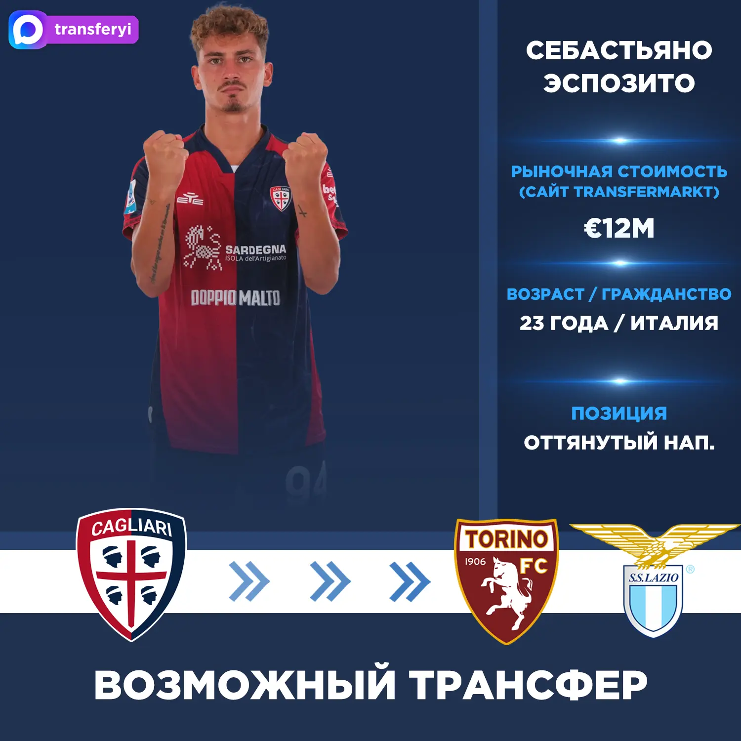 Николо Скира: «Торино» и «Лацио» следят за Себастьяно Эспозито из «Кальяри».