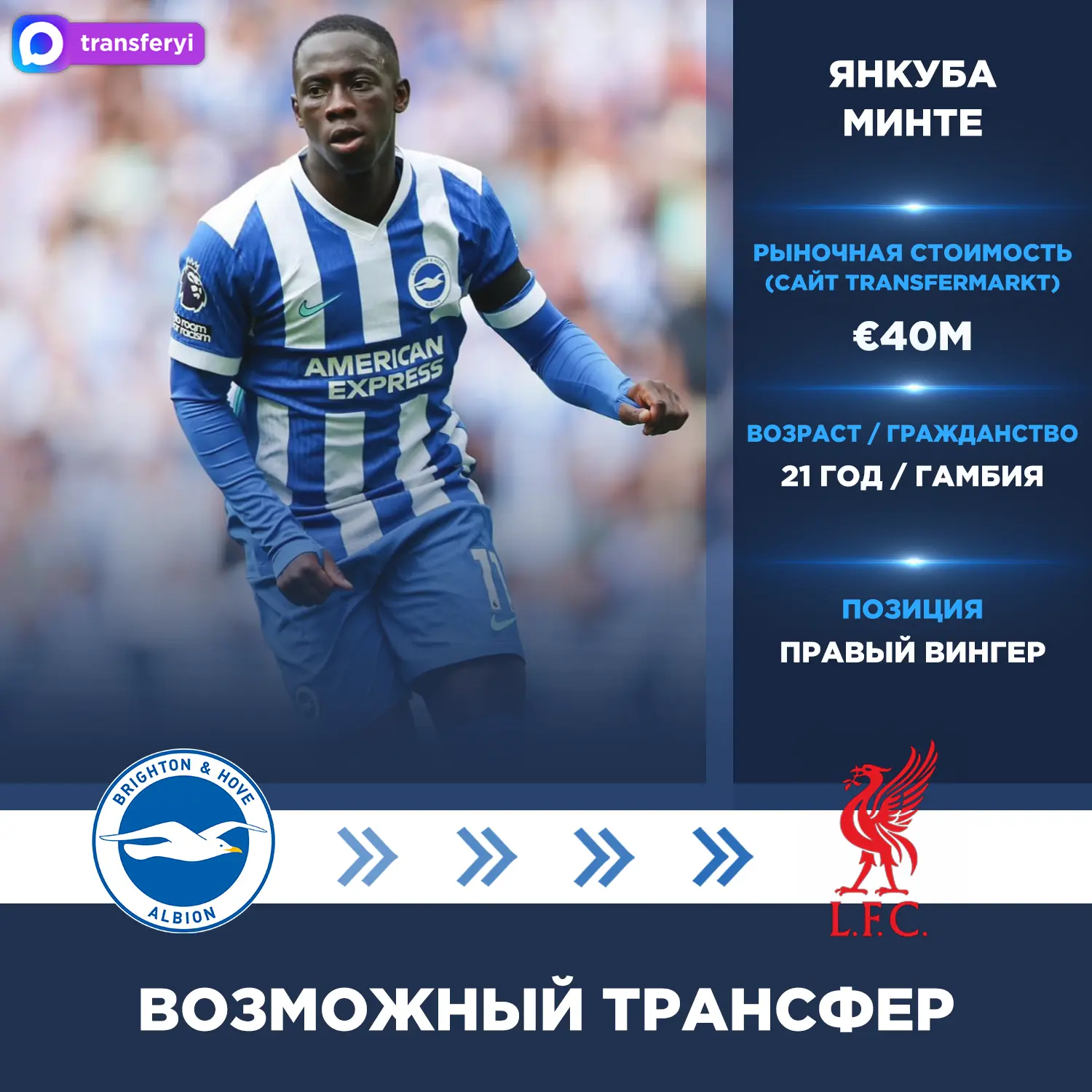 Mirror: «Ливерпуль» рассматривает Янкубу Минте из «Брайтона» как кандидата на замену Мохамеду Салаху.