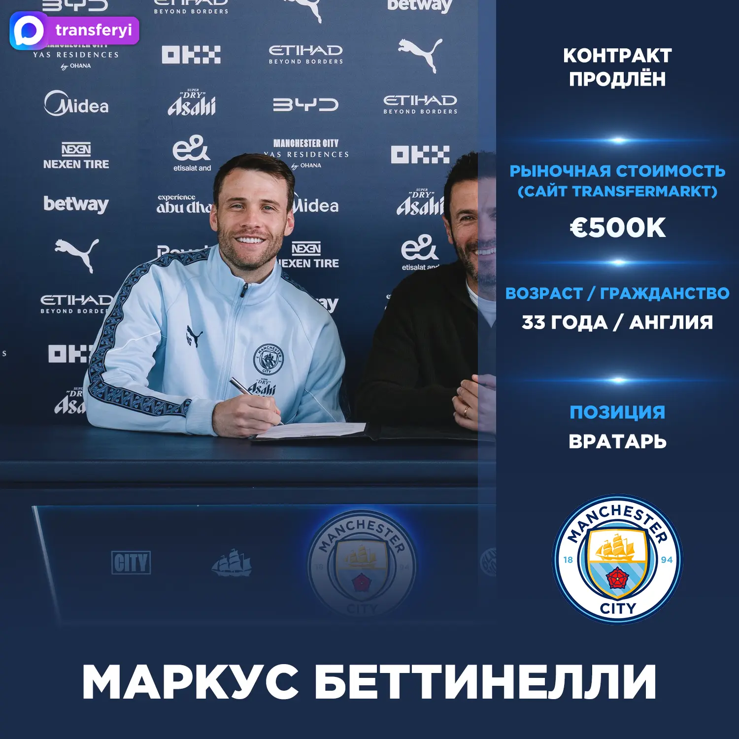 Официально: Маркус Беттинелли продлил контракт с «Манчестер Сити» до лета 2027 года.
