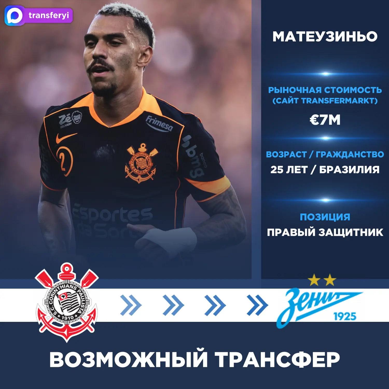 Как сообщает инсайдер, петербуржцы нацелены на трансфер Матеузиньо из «Коринтианса».