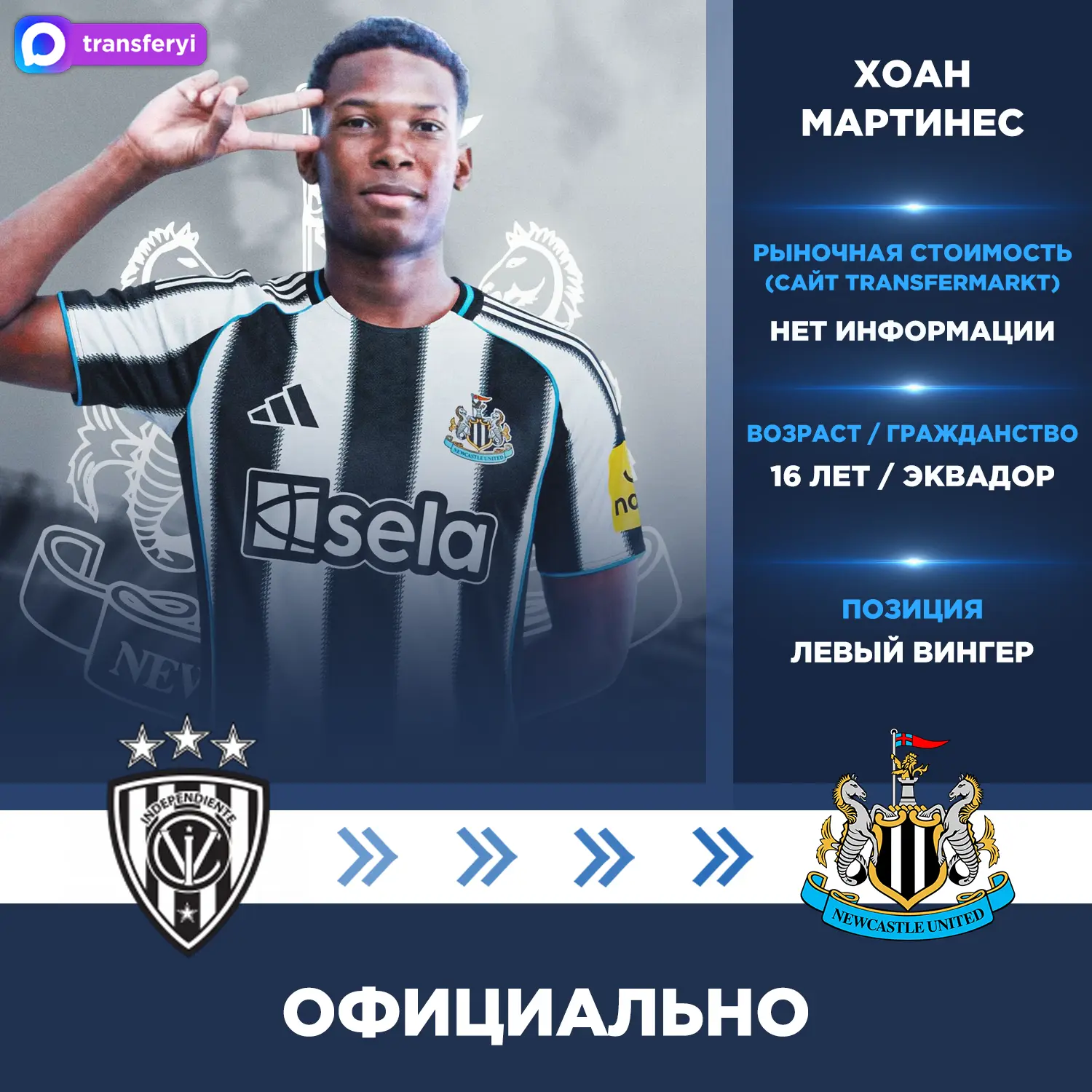 Официально: «Ньюкасл» подписал Хоана Мартинеса из «Индепендьенте дель Валье» (Эквадор).