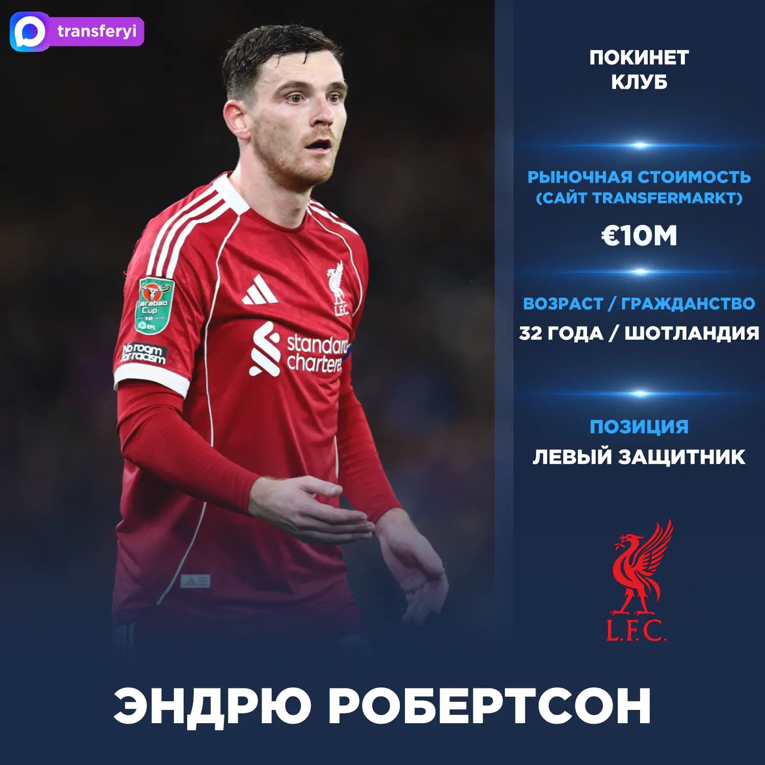 Официально: Эндрю Робертсон покинет «Ливерпуль» в конце текущего сезона.