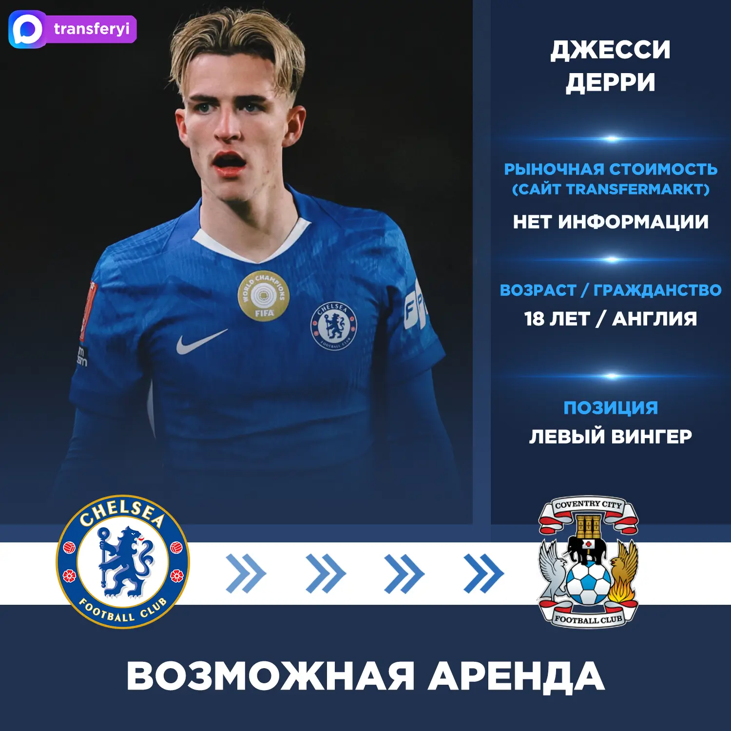 talkSPORT: Главный тренер Фрэнк Лэмпард намерен пригласить в «Ковентри Сити» 18-летнего Джесси Дерри из «Челси» в следующем сезоне. Рассматривается вариант с арендой.