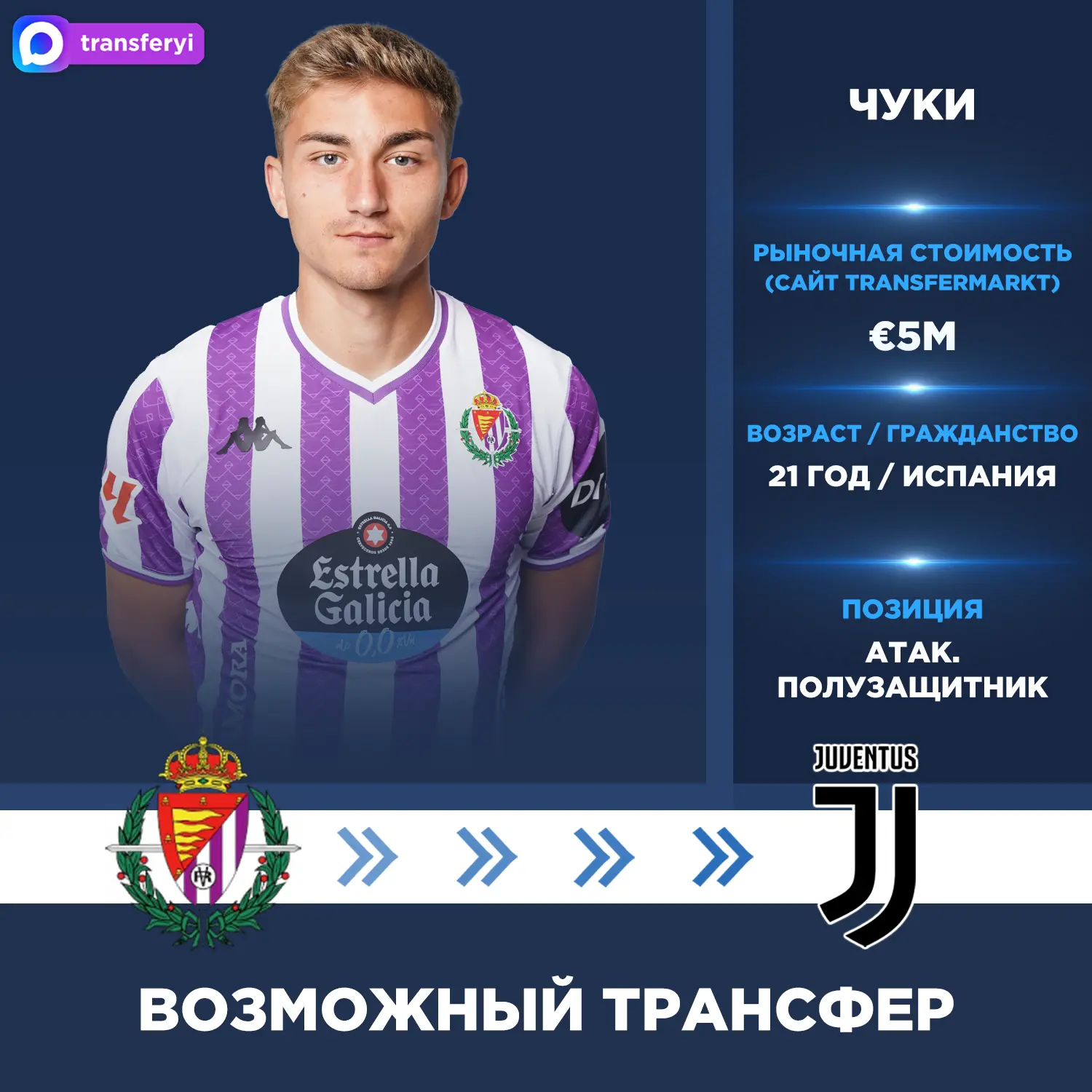 Николо Скира: «Ювентус» проявляет интерес к Чуки, который готов покинуть «Реал Вальядолид» летом в статусе свободного агента.