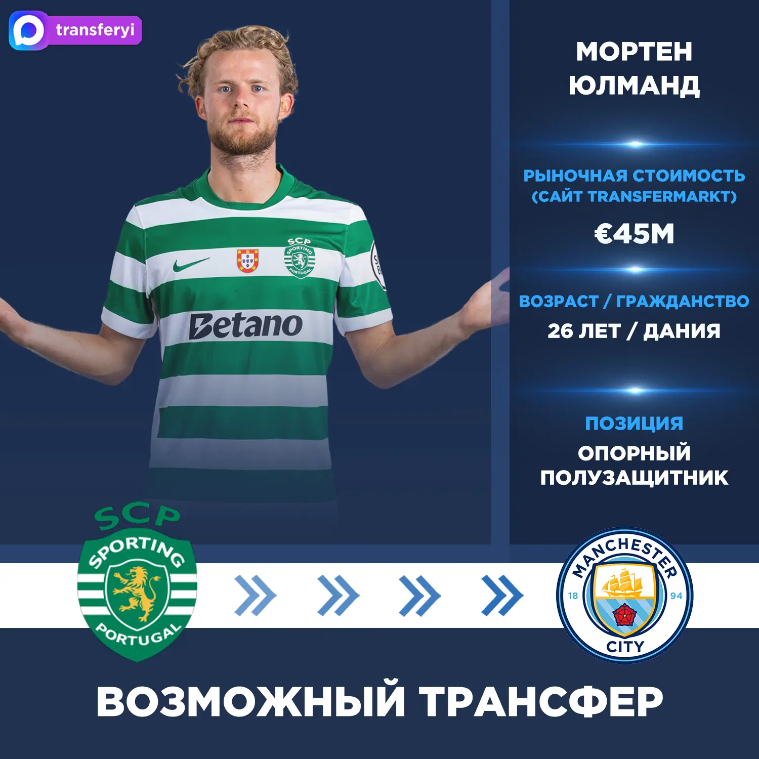 A Bola: Интерес «Манчестер Сити» к Мортену Юлманду из «Спортинга» усилился. Английский клуб уже предпринял конкретные шаги для подписания 26-летнего полузащитника в следующем трансферном окне.