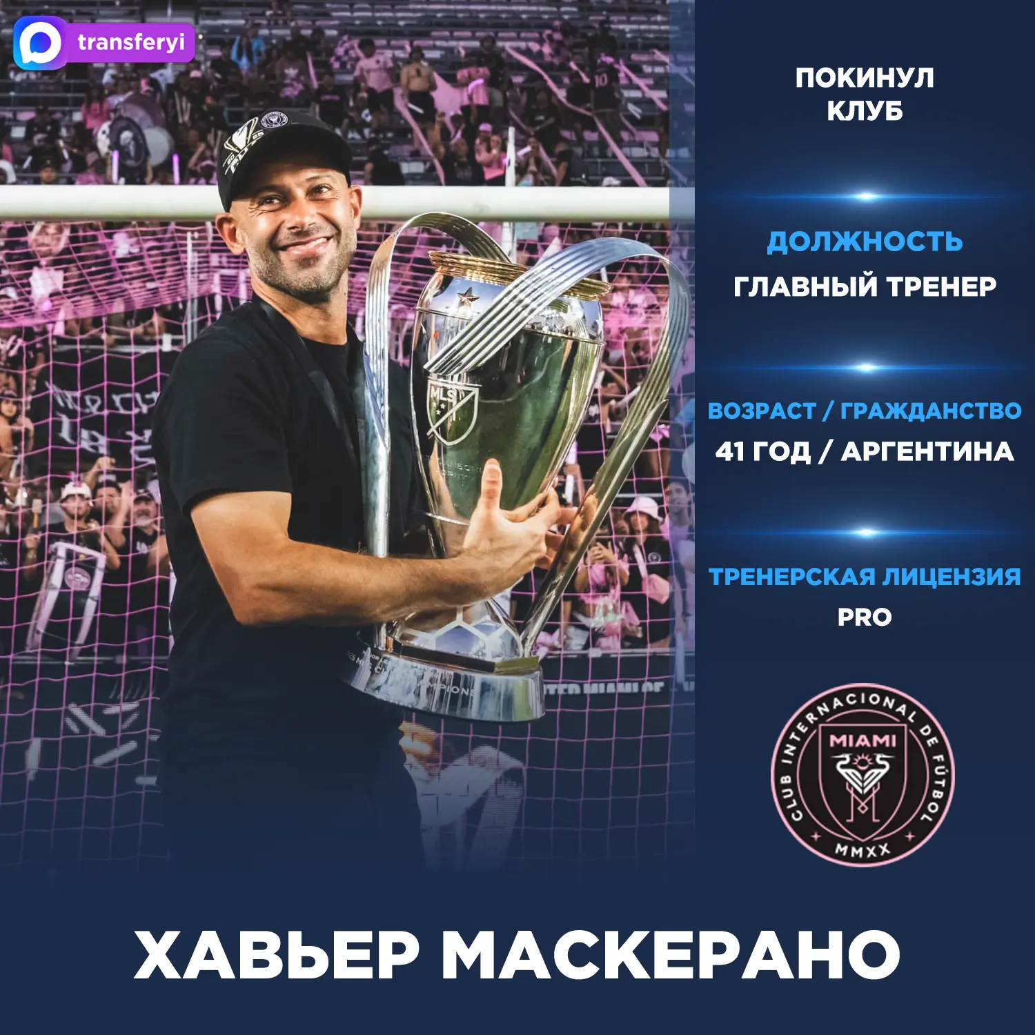 Официально: Хавьер Маскерано покинул пост главного тренера «Интер Майами».