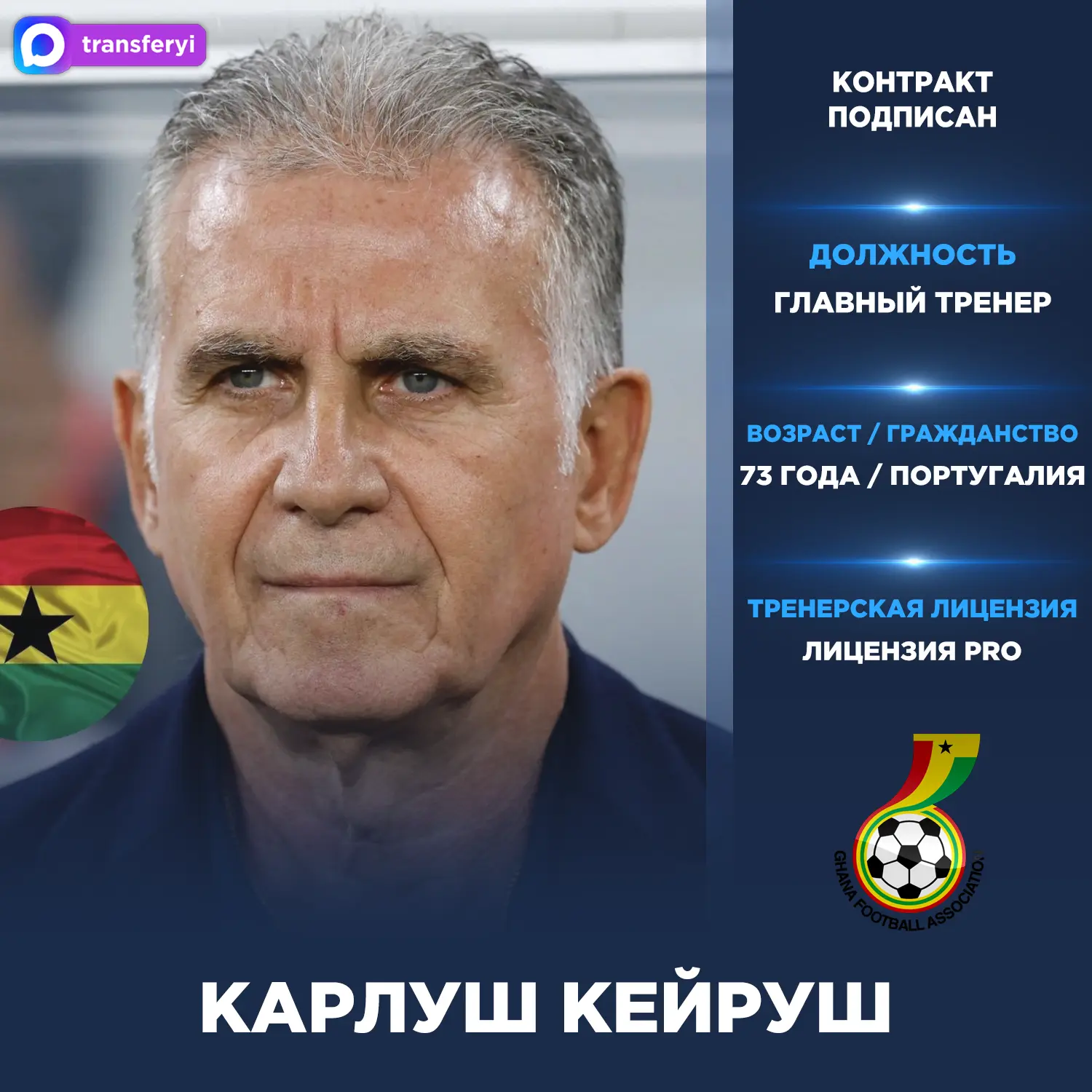 Официально: Карлуш Кейруш — новый главный тренер сборной Ганы.
