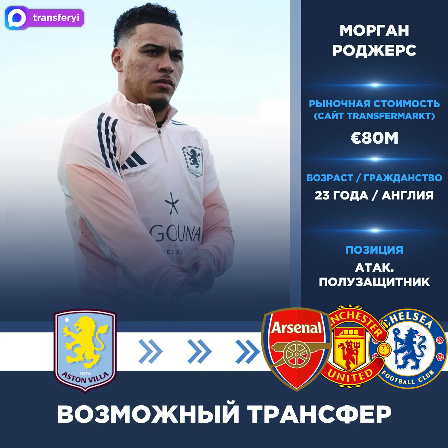 Как сообщает источник, интерес к 23-летнему футболисту проявляют «Арсенал», «Манчестер Юнайтед» и «Челси». «Астон Вилла», вероятно, потребует более 80 млн фунтов за трансфер.